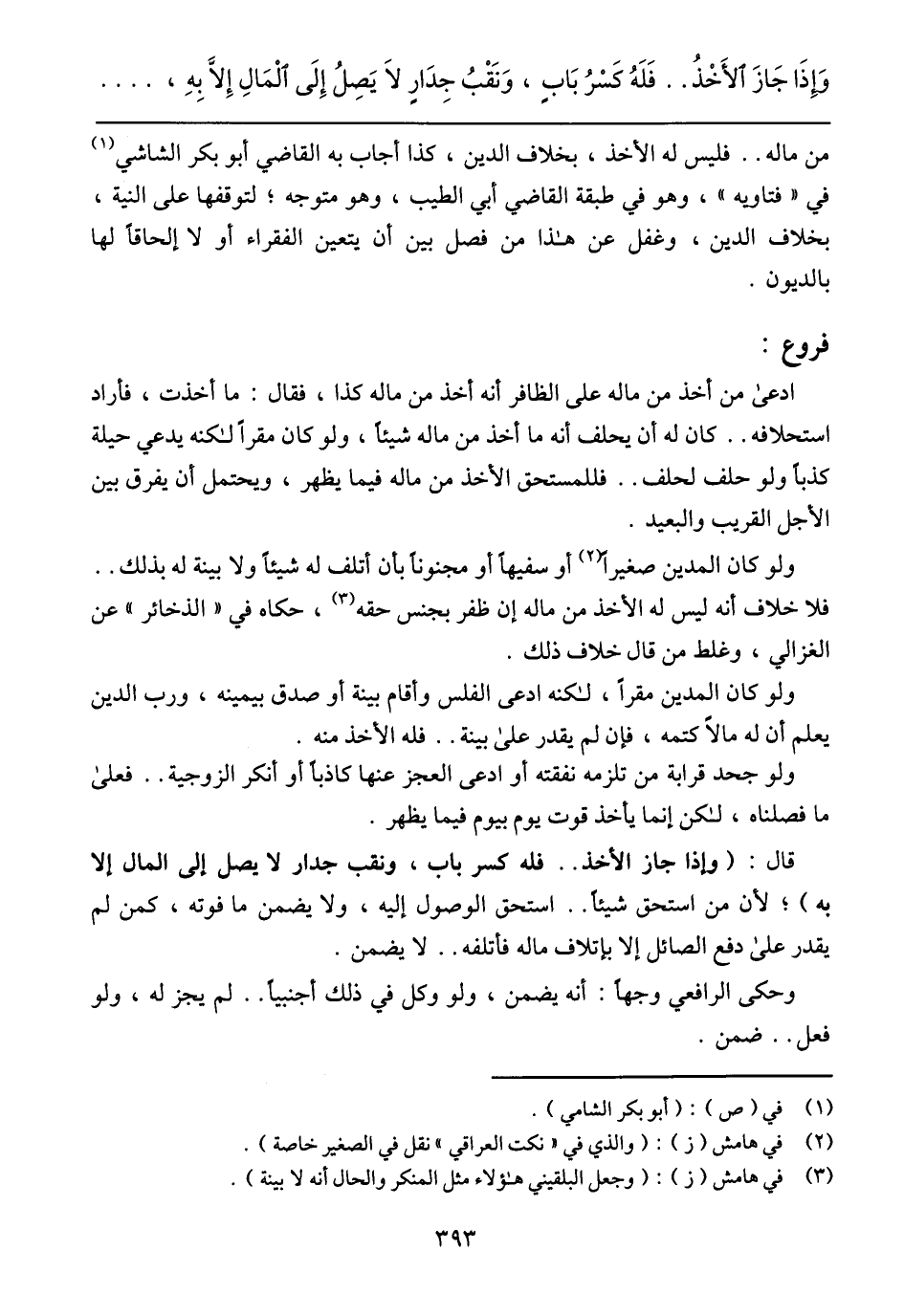وَإِذَا جَازَ الأَخْذُ .. فَلَهُ كَسْرُ بَابٍ، وَنَقْبُ جِدَارٍ لاَ يَصِلُ الىَ الْمِالِ إلاَّ بِهِ،