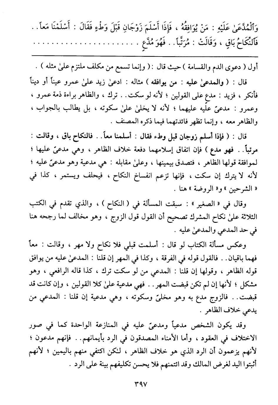وقال في (الصغير): سبقت المسألة في (النكاح)، والذي تقدم في الكتب الثلاثة على نكاح المشرك تصحيح أن القول قول الزوج، وهو مخالف لما رجحه هنا في حد المدعي والمدعى عليه.