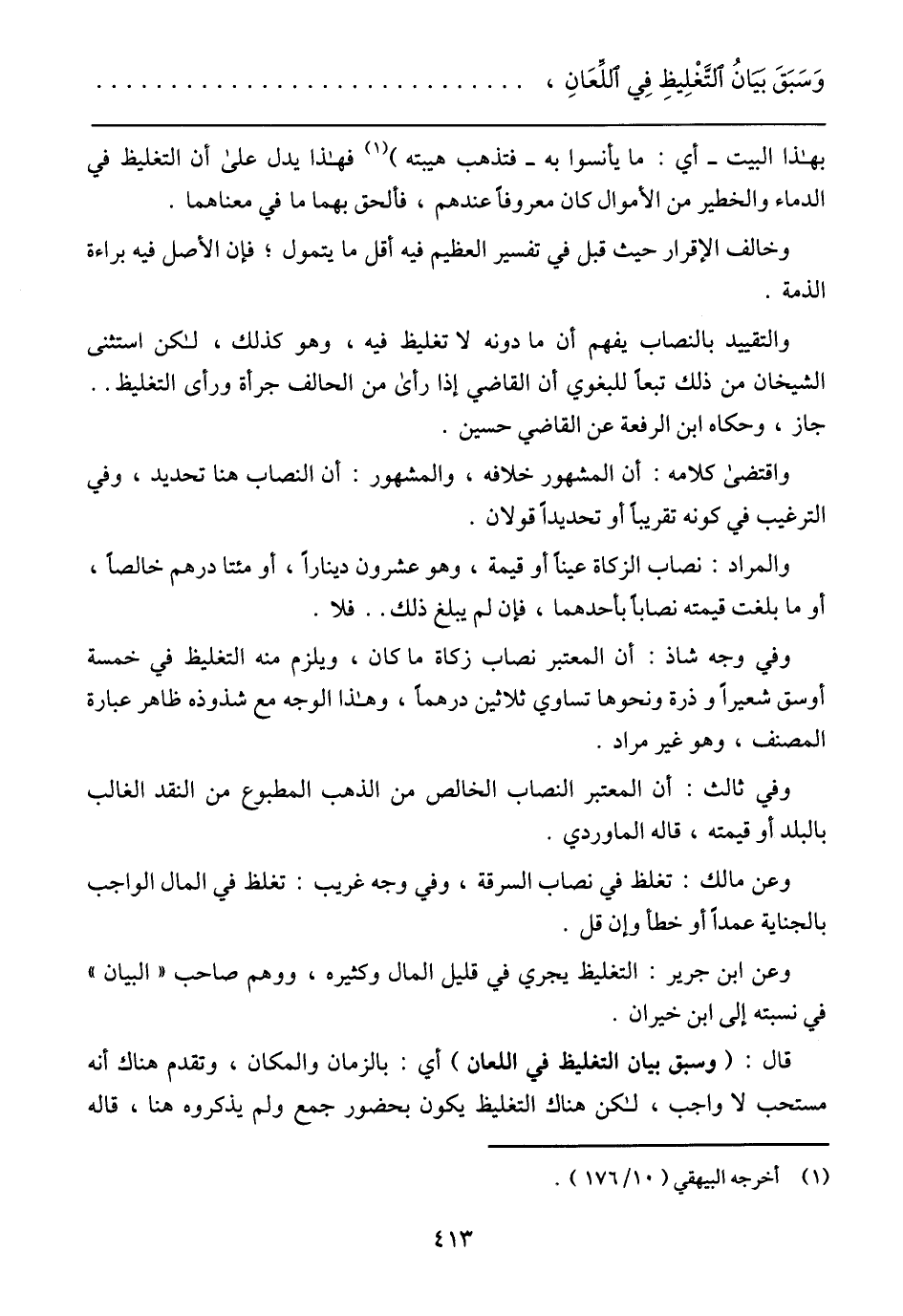 وعن ابن جرير: التغلظ يجري في قليل المال وكثيره، ووهم صاحب (البيان) في نسبته إلى ابن خيران.