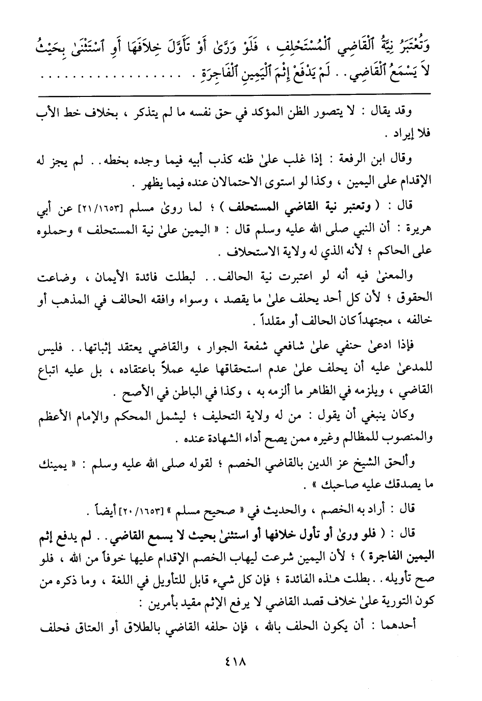 والمعنى فيه أنه لو اعتبرت نية الحالف .. لبطلت فائدة الأيمان، وضاعت الحقوق؛ لأن كل أحد يحلف على ما يقصد، وسواء وافقه الحالف في المذهب أو خالفه، مجتهدًا كان الحالف أو مقلدًا.