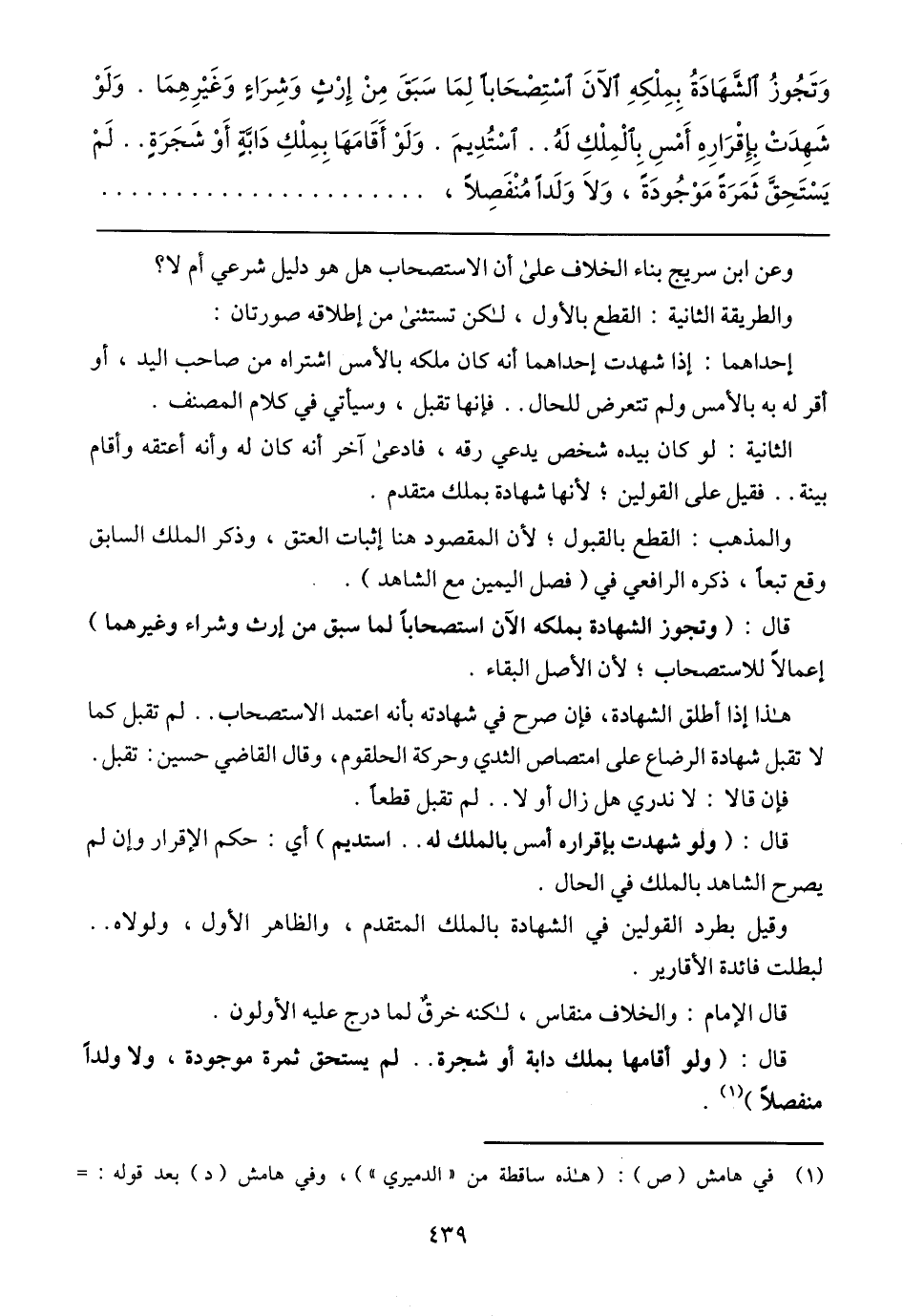 قال: (وتجوز الشهادة بملكه الآن استصحابًا لما سبق من إرث وغيرهما) إعمالًا للاستصحاب، لأن الأصل البقاء.