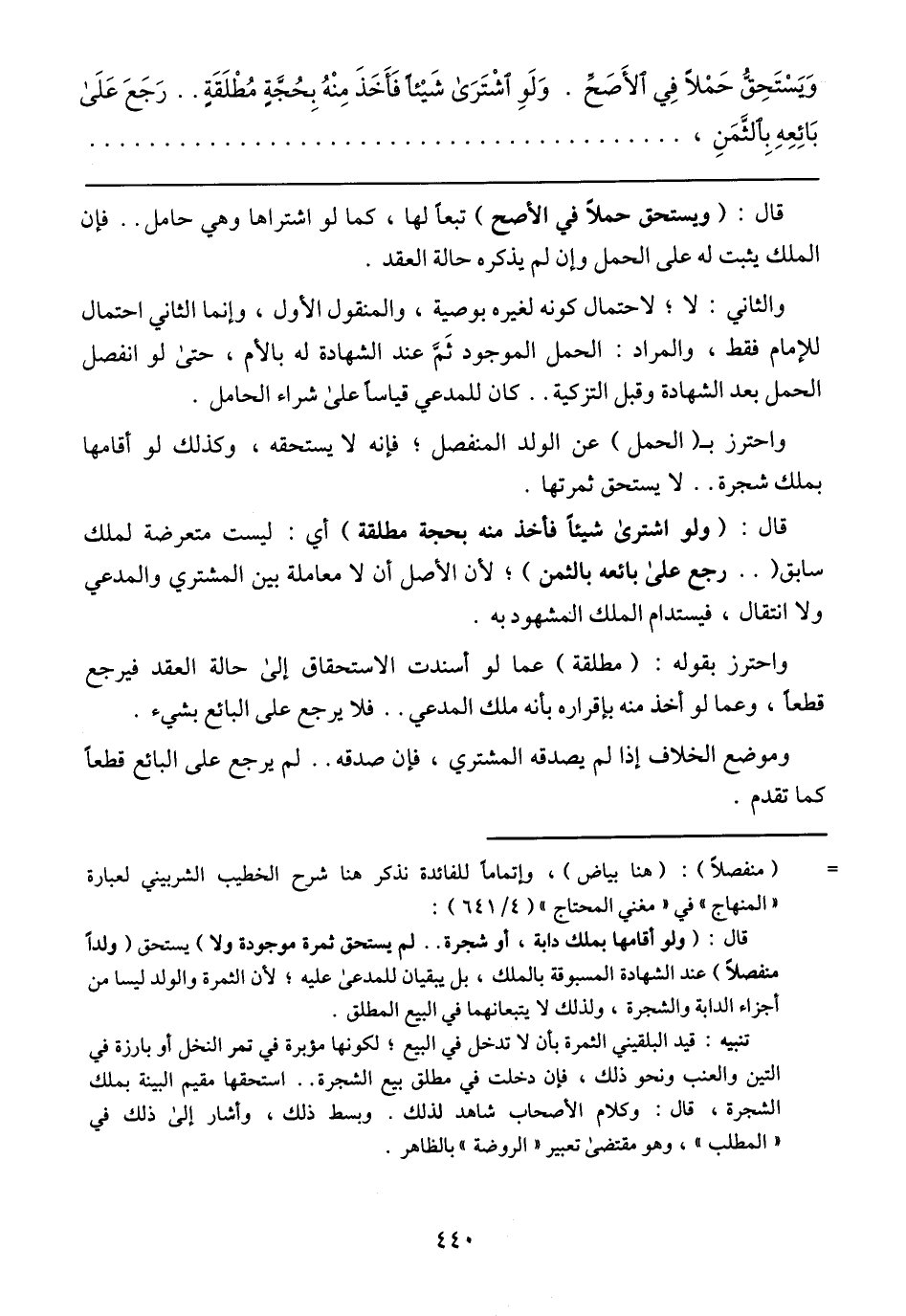 والثاني: لا؛ لاحتمال كونه لغيره بوصية، والمنقول الأول، وإنما الثاني احتمال للإمام فقط، والمراد: الحمل الموجود ثم عند الشهادة له بالأم، حتى لو انفصل الحمل بعد الشهادة وقبل التزكية ... كان للمدعي قياسًا على شراء الحامل.