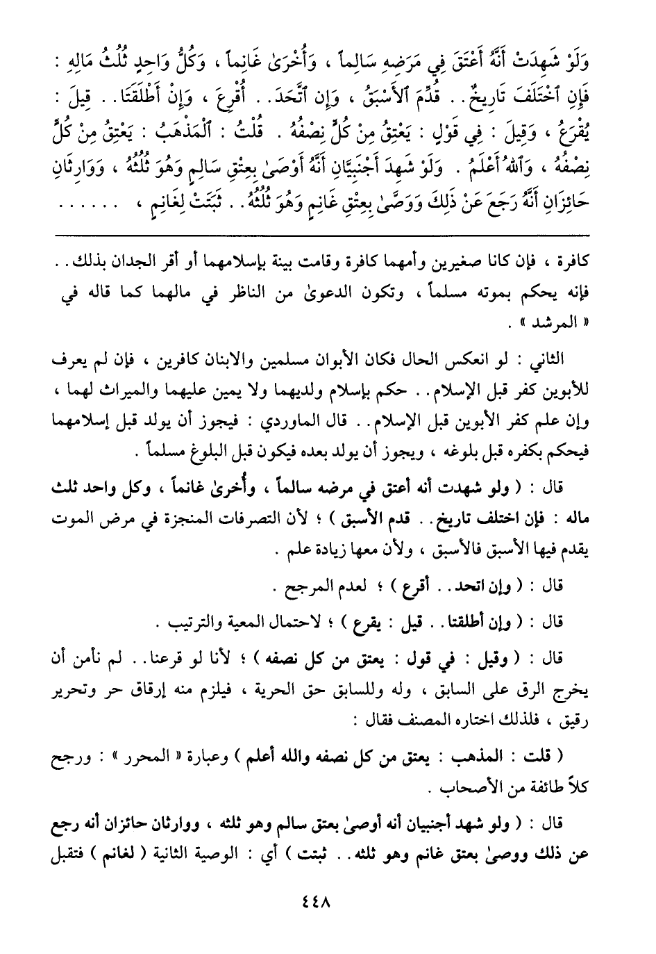 (قلت: المذهب: يعتق من كل نصفه والله أعلم) وعبارة (المحرر): ورجح كلًا طائفة من الأصحاب.