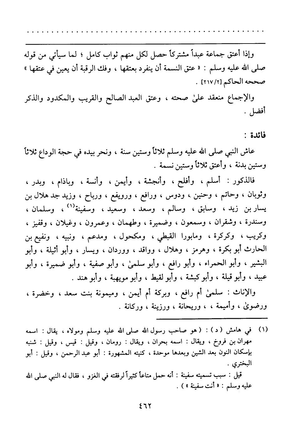 وإذا أعتق جماعة عبدًا مشتركًا حصل لكل منهم ثواب كامل؛ لما سيأتي من قوله صلى الله عليه وسلم: (عتق النسمة أن ينفرد بعتقها, وفك الرقبة أن يعين في عتقها (صححه الحاكم [2/ 217].