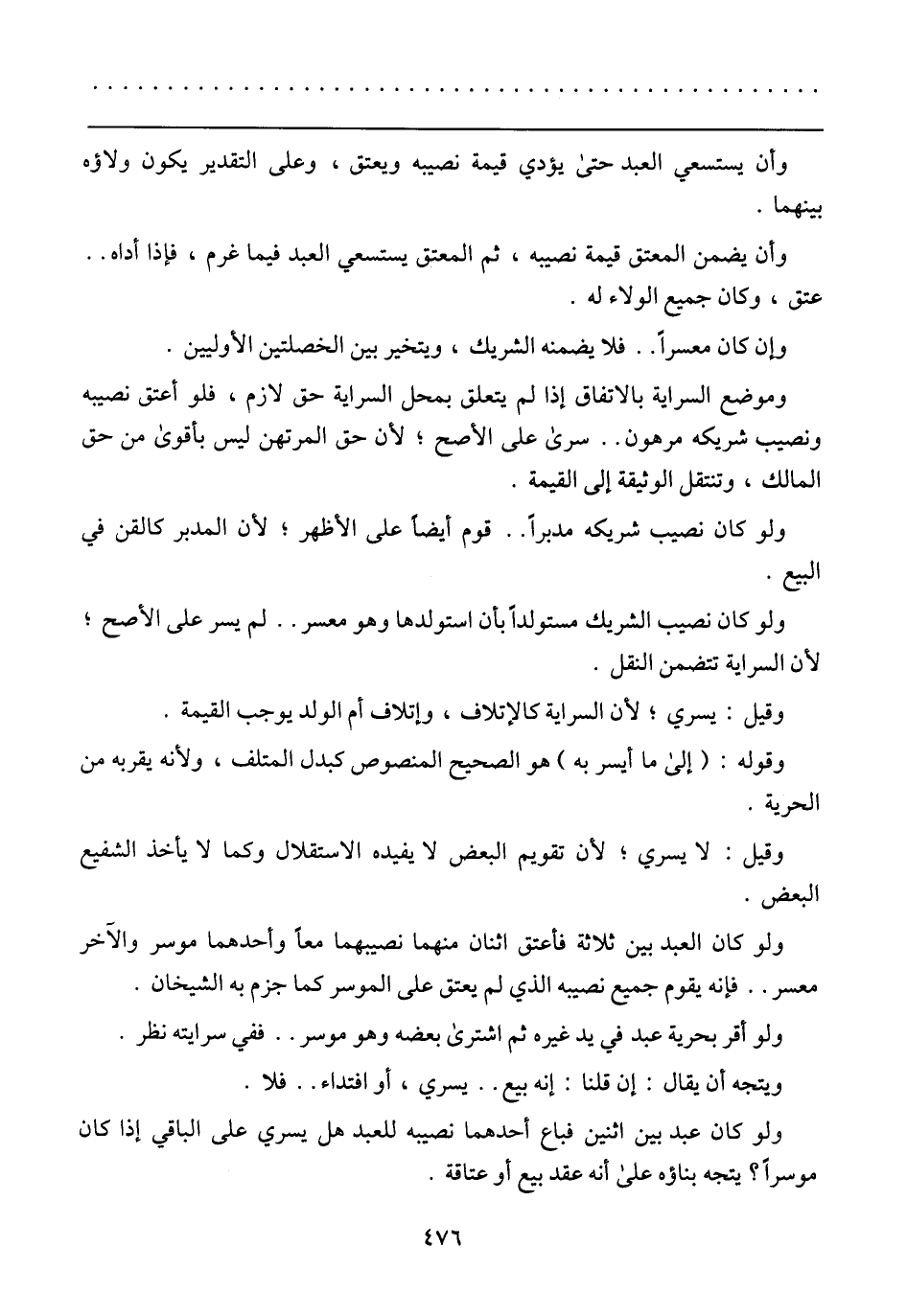 وقيل: لا يسري؛ لأن تقويم البعض لا يفيده الاستقلال وكما لا يأخذ الشفيع البعض.