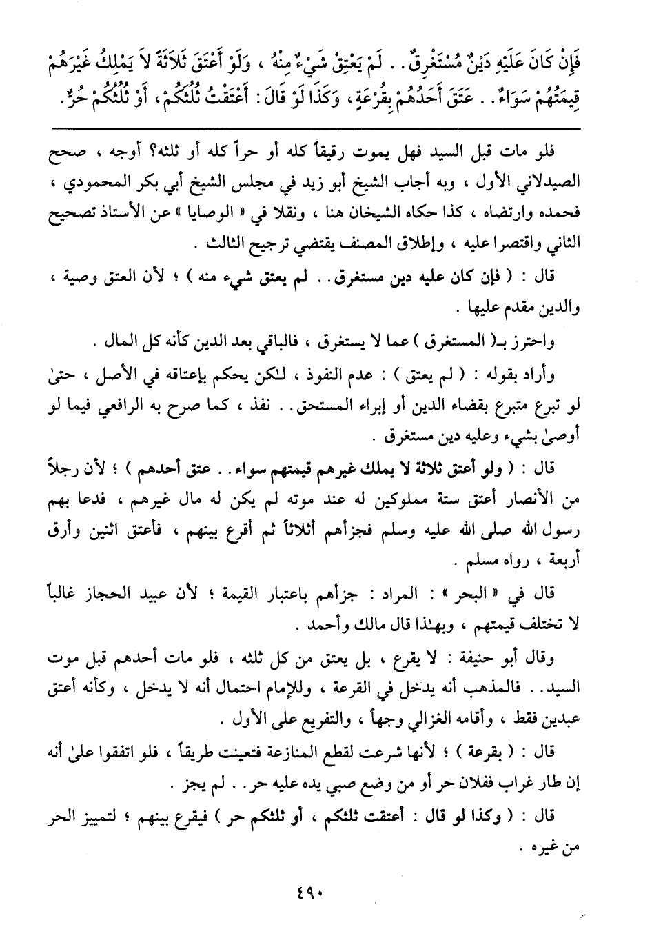 وأراد بقوله: (لم يعتق): عدم النفوذ, لكن يحكم بإعتاقه في الأصل, حتى لو تبرع متبرع بقضاء الدين أو إبراء المستحق .. نفذ, كما صرح به الرافعيفيما لو أوصى بشيء وعليه دين مستغرق.