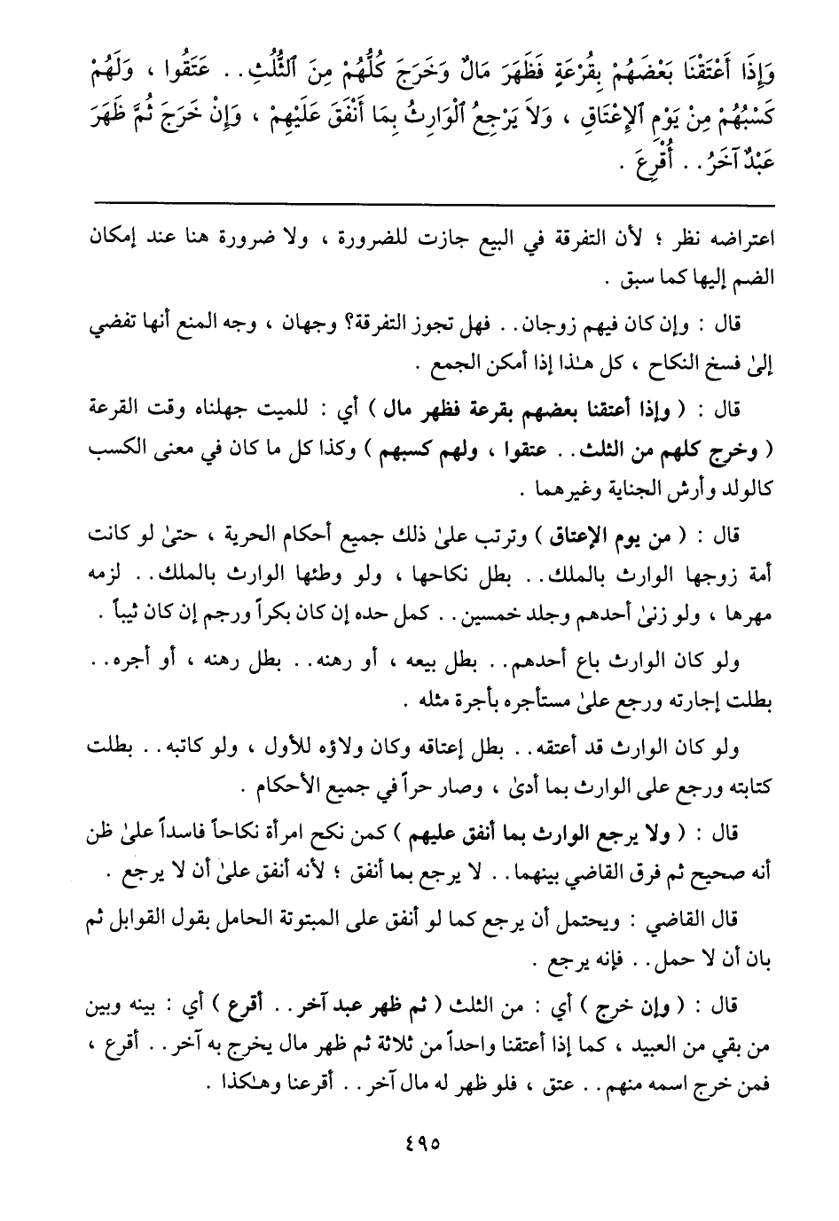وَإذَا أعَتَقنَا بَعضَهُم بِقُرعَةٍ فَظَهَرَ مَالٌ وخَرَجَ كٌلٌّهٌم مِن الثٌلٌثِ .. عَتَقٌوا , وَلَهٌم كَسبٌهٌم مِن يَومِ الإعتَاقِ , وَلاَ يَرجِعٌ الوَارِثٌ بِمَا أنفَقَ عَلَيهِم , وَإن خَرَجَ ثُمَّ ظَهَرَ عَبدٌ آخَرُ .. أُقرِعَ