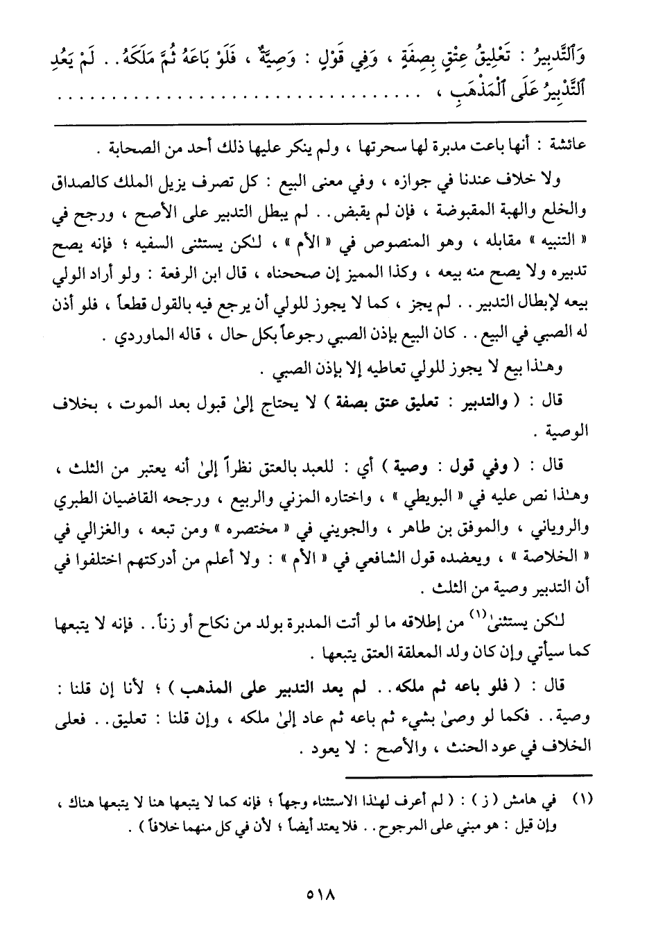 وَالتَّدبِيرُ: تَعْلِيقُ عِتْقٍ بِصِفَةٍ، وَفِي قَوْلٍ: وَصِيَّةٌ، فَلَوْ بَاعَهُ ثُمَّ مَلَكَهُ .. لَمْ يَعُدِ التَّدْبِيرُ عَلَى الْمَذْهبِ،
