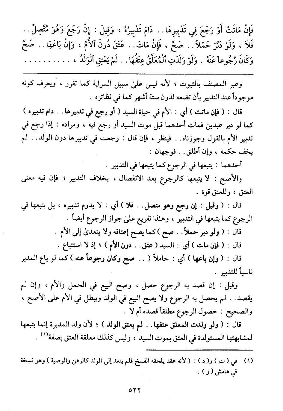 قال: (وقيل: إن رجع وهو متصل .. فلا) أي: لا يدوم تدبيره, بل يتبعها في الرجوع كما يتبعها في التدبير, وهذا تفريغ على جواز الرجوع أيضا.