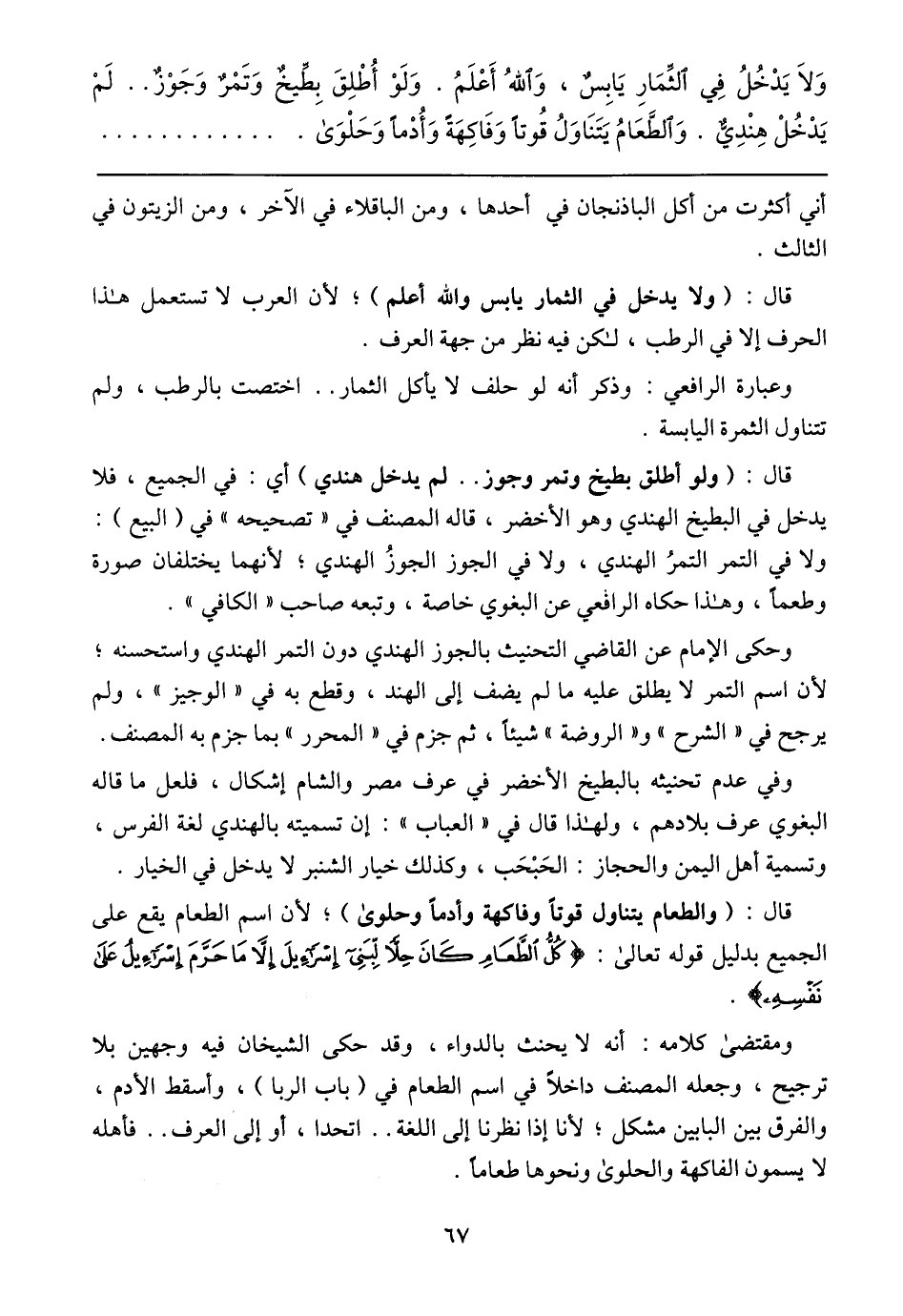 وَلاَ يَدْخُلُ فِي الثِّمَارِ يَابِسٌ، وَاللهُ أَعْلَمُ. وَلَوْ أُطْلِقَ بِطِّيخٌ وَتَمْرٌ وَجَوْزٌ .. لَمْ يَدْخُلْ هِنْدِيٌّ. والطَّعَامُ يَتَنَاوَلُ قُوتًا وَفَاكِهَةً وَأُدْمًا وَحَلْوَى
