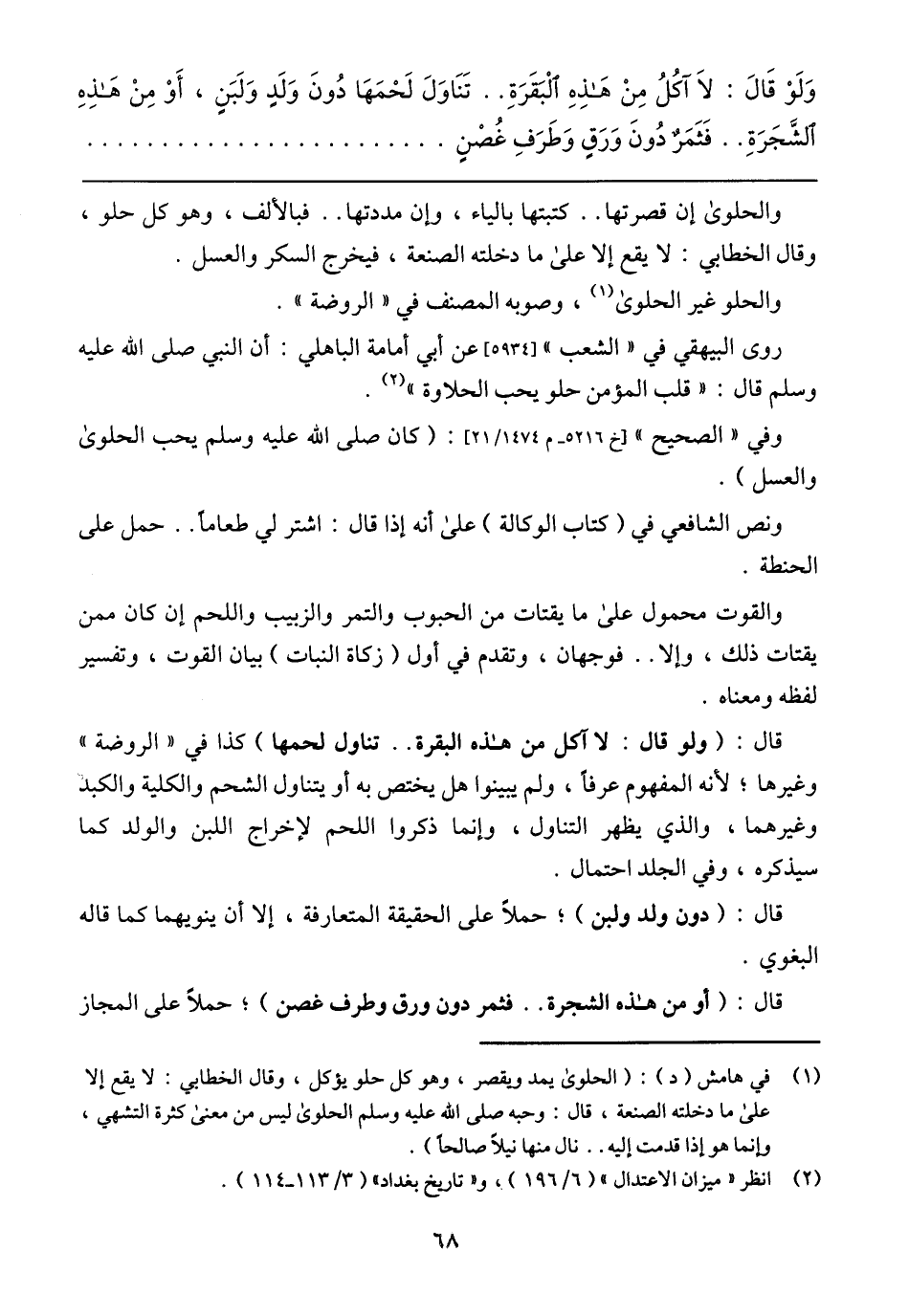 والحلوى إن قصرتها .. كتبتها بالياء، وإن مددتها .. فبالألف، وهو كل حلو، وقال الخطابي: لا يقع إلا على ما دخلته الصنعة، فيخرج السكر والعسل.