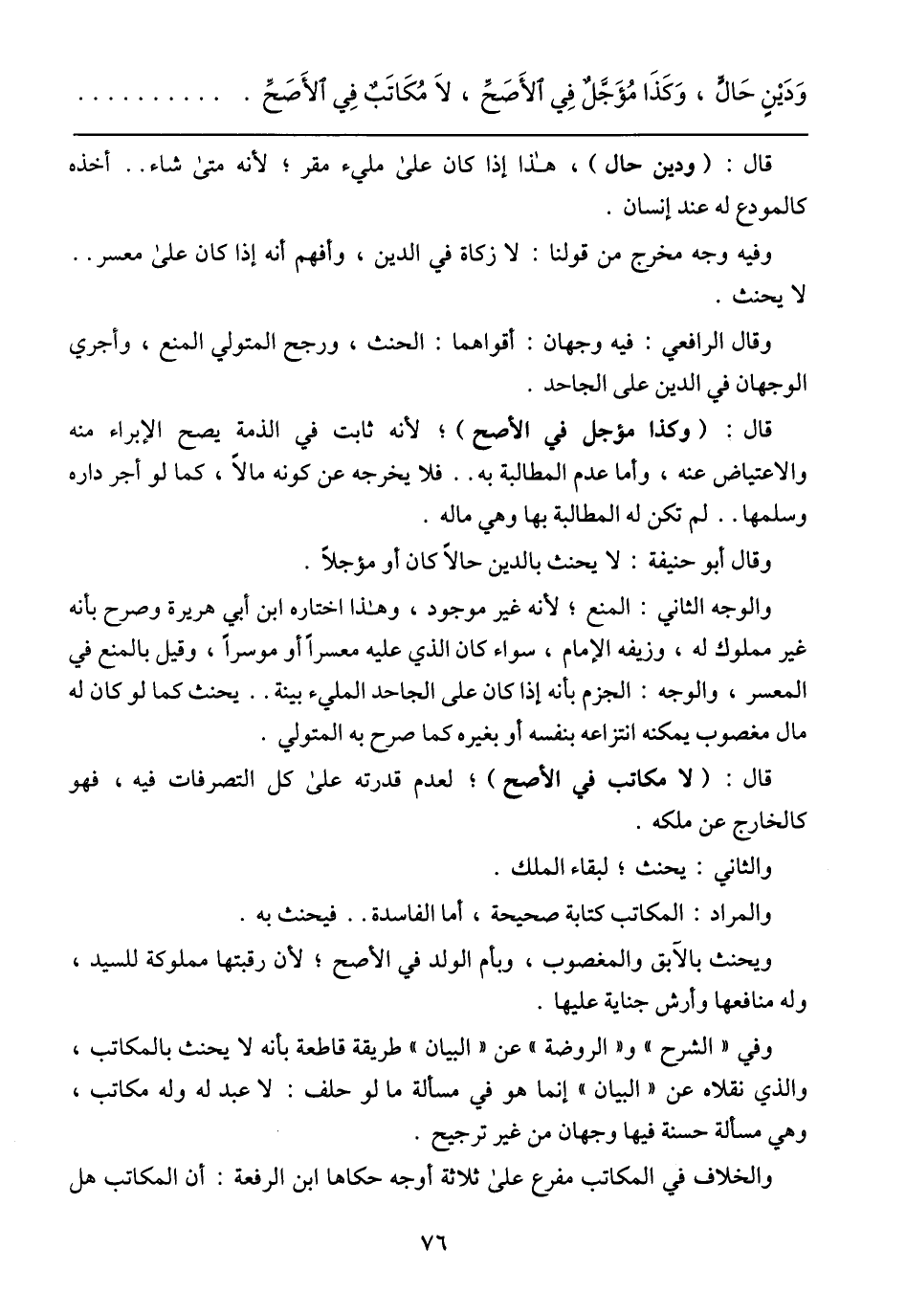 وقال أبو حنيفة: لا يحنث بالدين حالًا كان أو مؤجلًا.