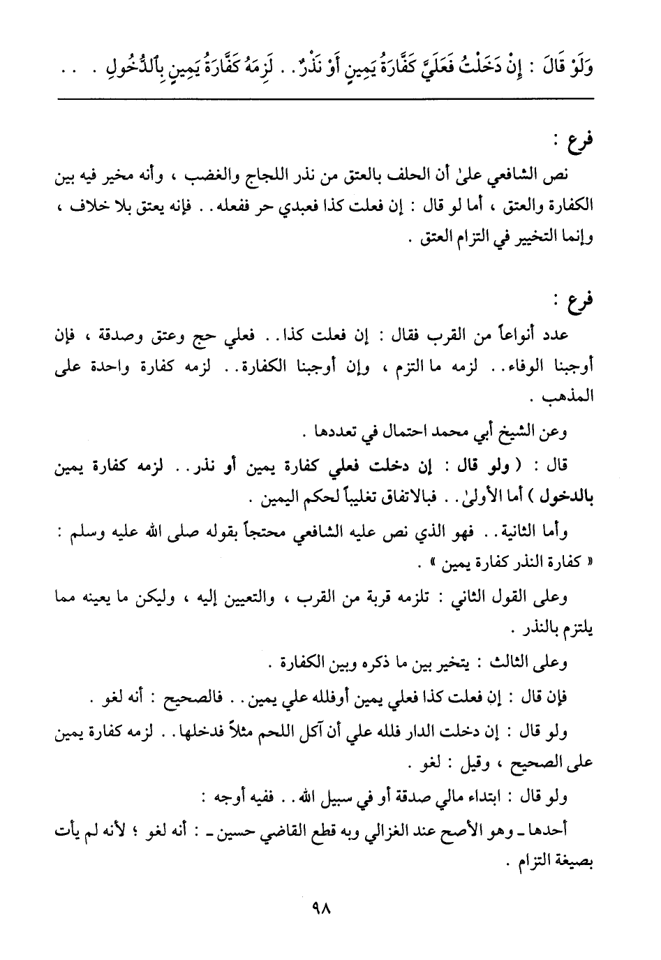 وَلَوْ قَالَ: إِنْ دَخَلْتُ فَعَلَيَّ كَفَّارَةُ يَمِينٍ أَوْ نَذْرٌ .. لَزِمَهُ كَفَّارَةُ يَمِينٍ بِالدُّخُولِ،
