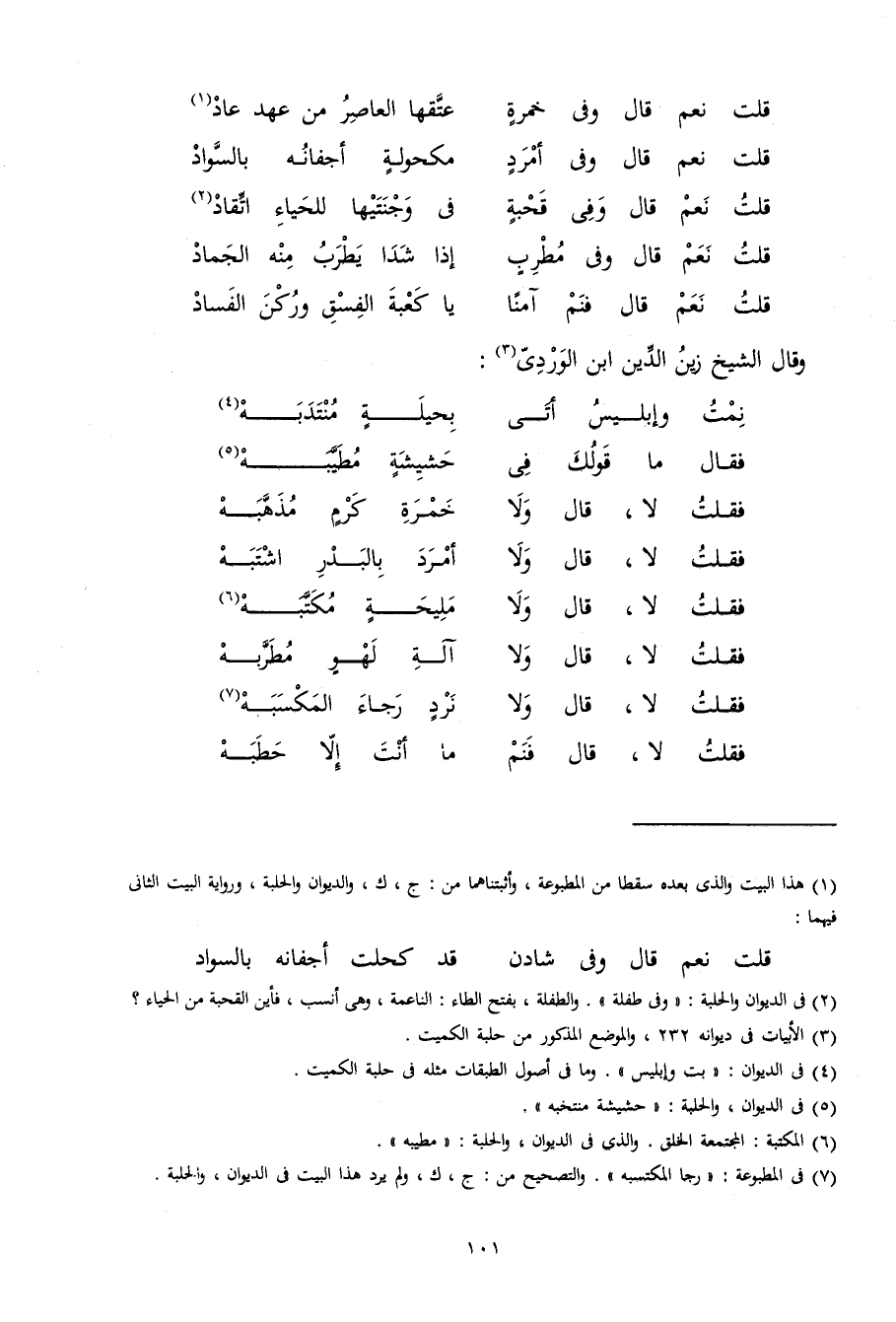 وَقَالَ الشَّيْخ زين الدّين ابْن الوردي