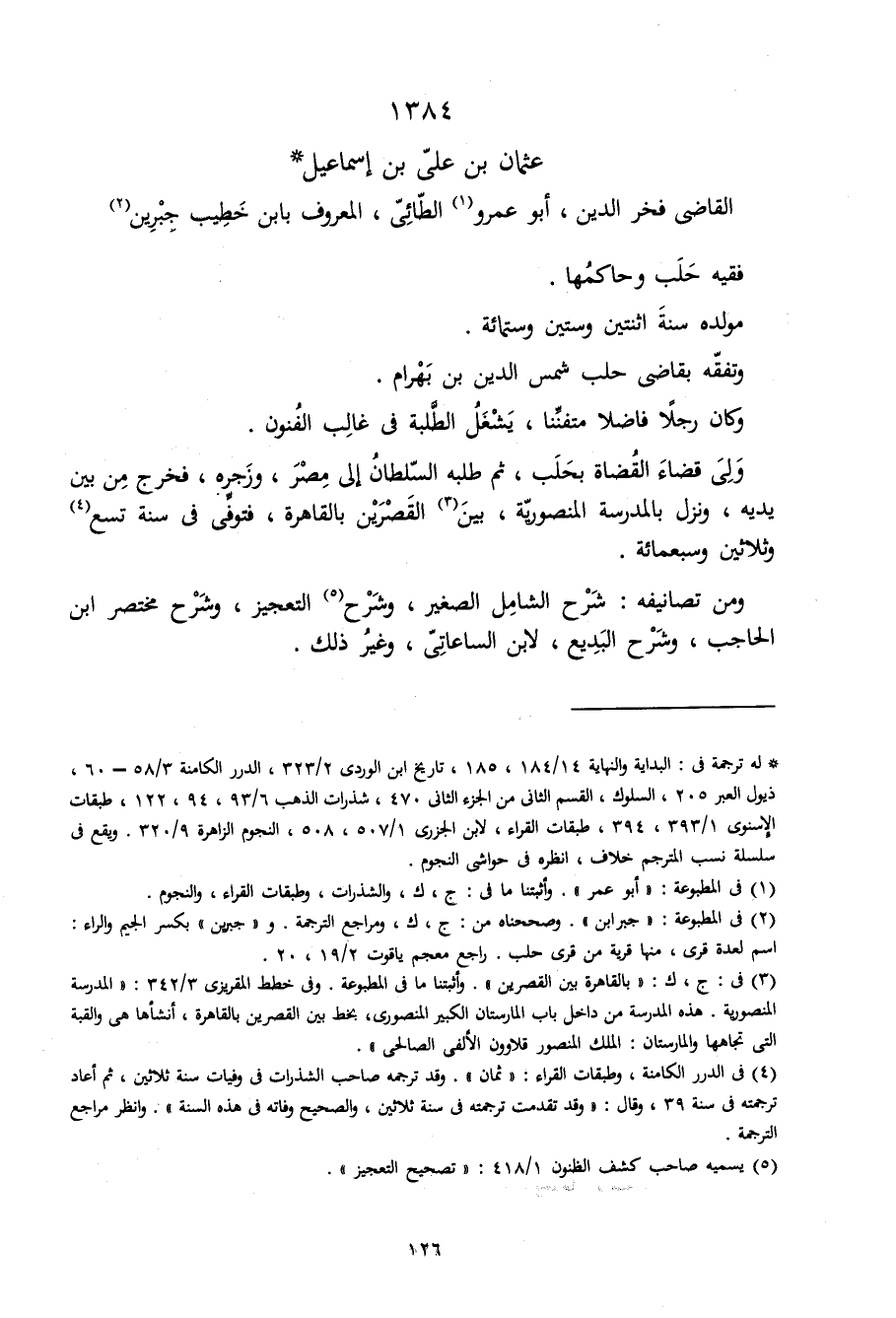 1384 - عُثْمَان بن عَليّ بن إِسْمَاعِيل القَاضِي فَخر الدّين أَبُو عَمْرو الطَّائِي الْمَعْرُوف بِابْن خطيب جبرين