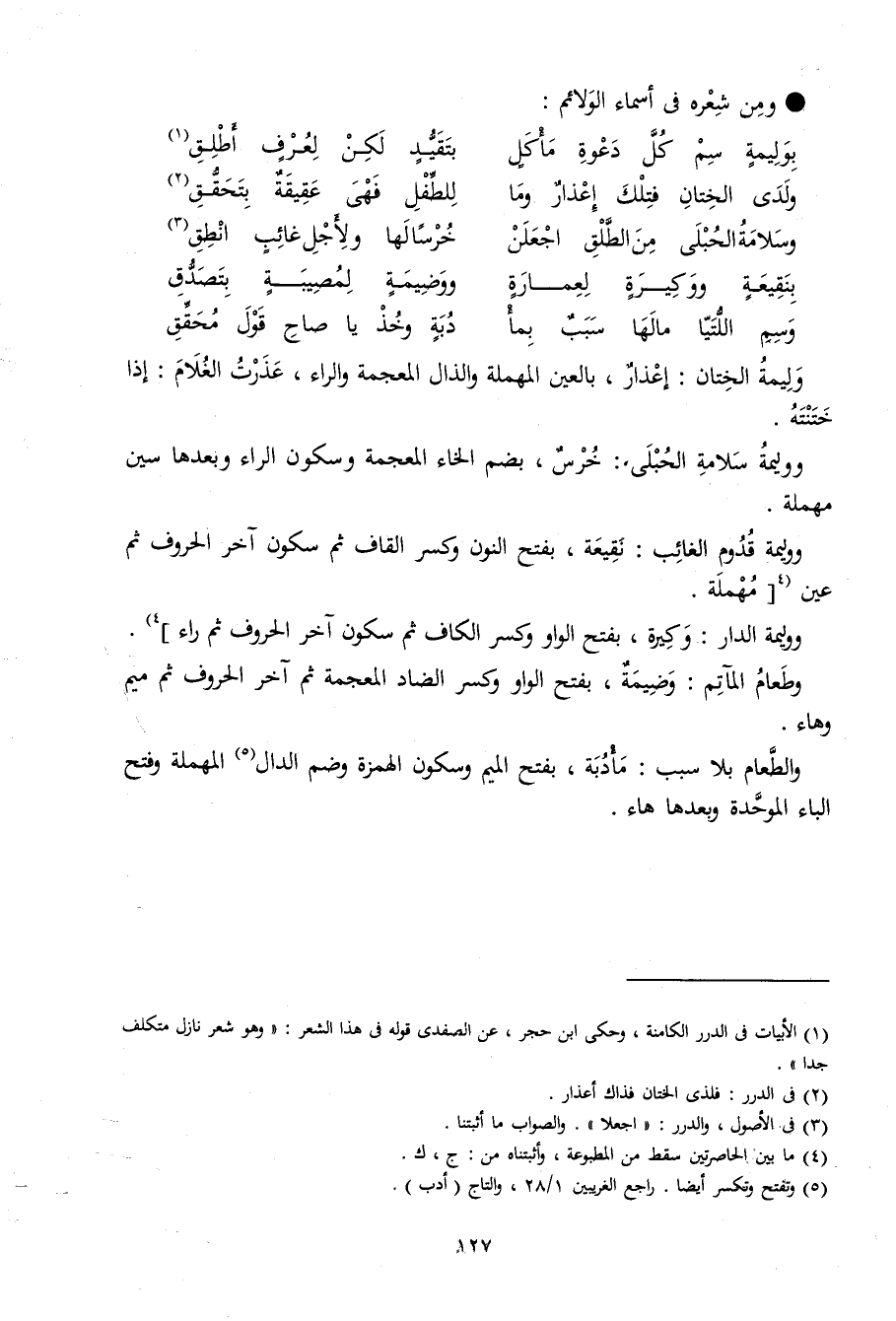 (ولدى الْخِتَان فَتلك إعذار وَمَا ... للطفل فَهِيَ عقيقة بتحقق)