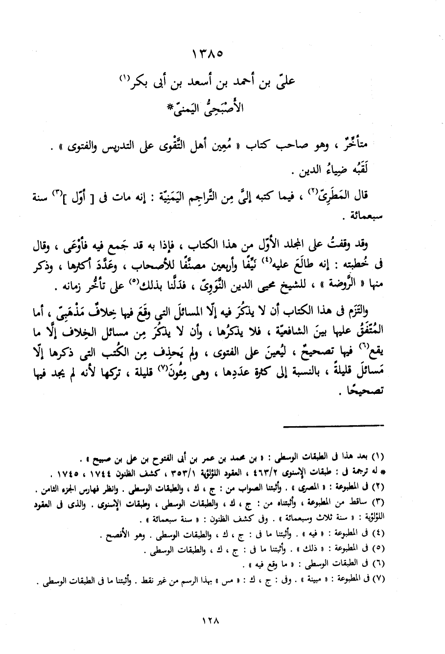 1385 - عَليّ بن أَحْمد بن أسعد بن أبي بكر الأصبحي اليمني