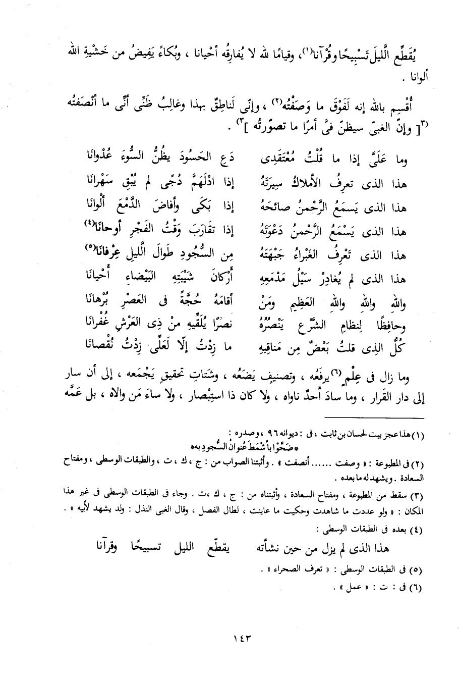 يقطع اللَّيْل تسبيحا وقرآنا وقياما لله لَا يُفَارِقهُ أَحْيَانًا وبكاء يفِيض من خشيَة الله ألوانا