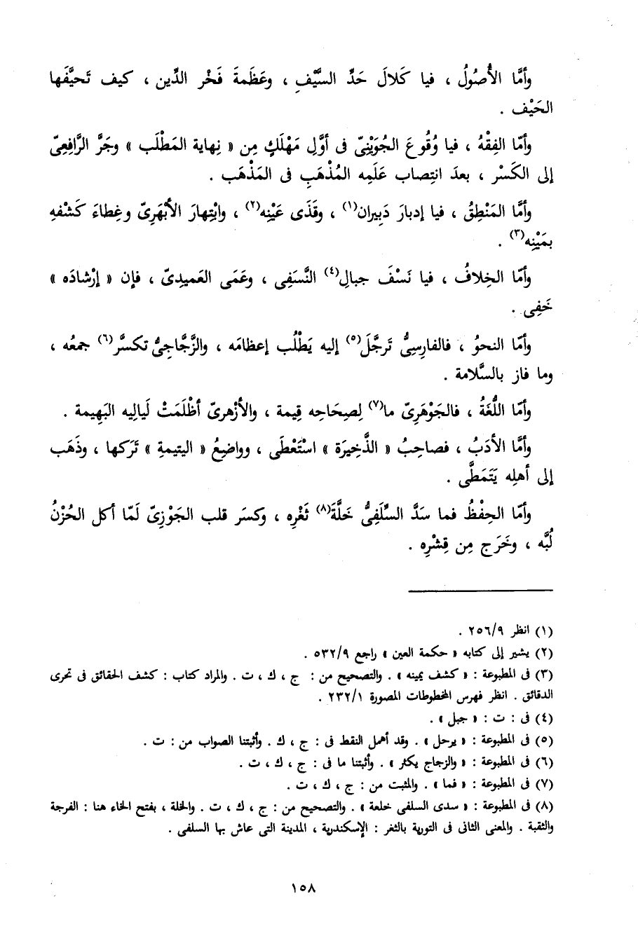 وَأما الْأُصُول فيا كلال حد السَّيْف وعظمة فَخر الدّين كَيفَ تحيفها الحيف