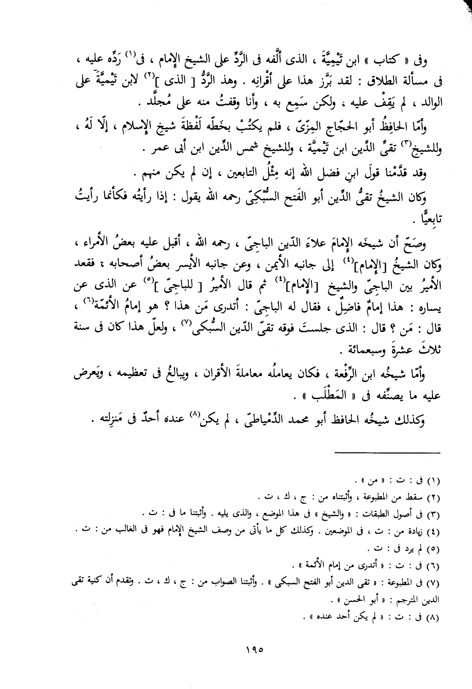 وَفِي كتاب ابْن تَيْمِية الَّذِي أَلفه فِي الرَّد على الشَّيْخ الإِمَام فِي رده عَلَيْهِ فِي مَسْأَلَة الطَّلَاق لقد برز هَذَا على أقرانه