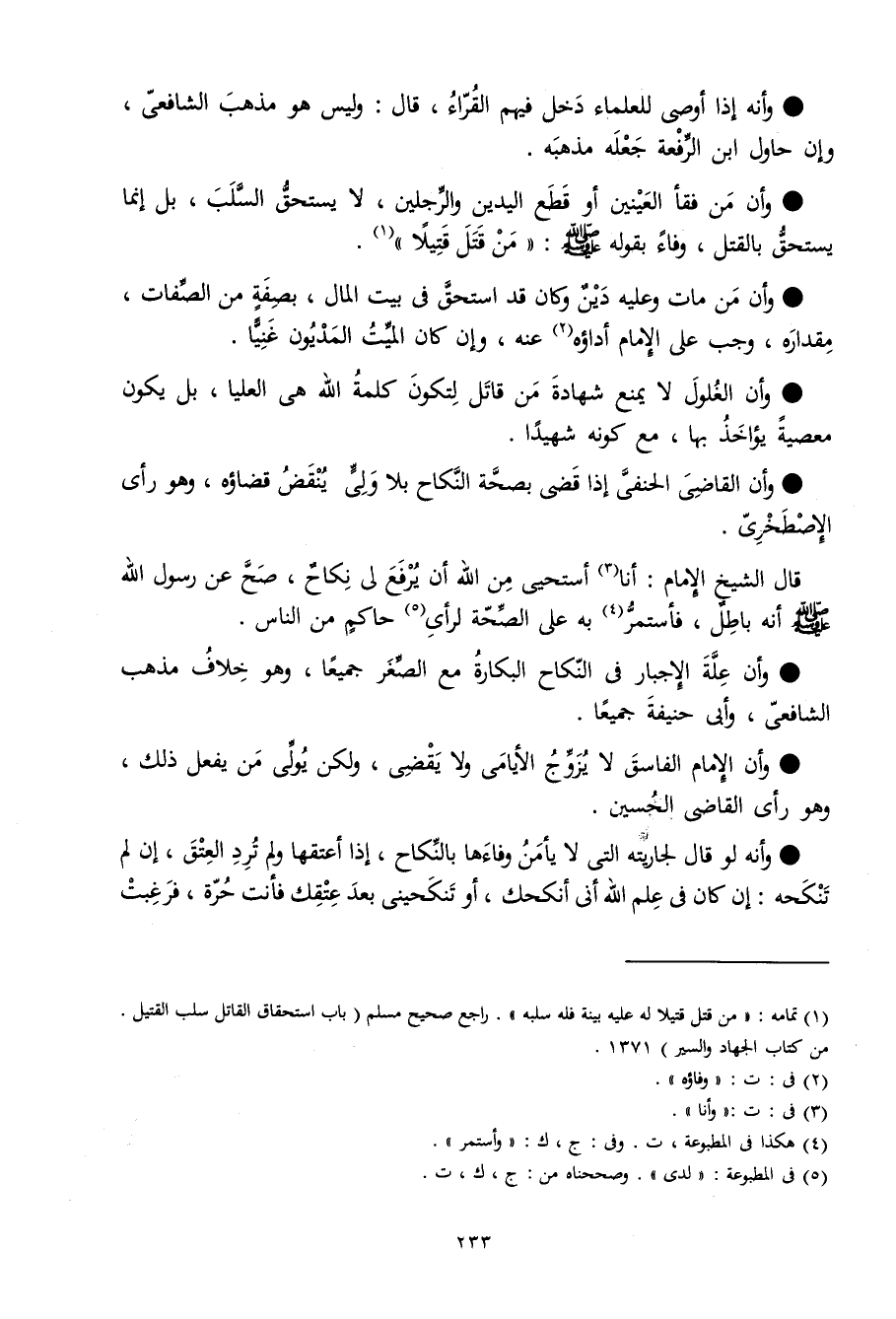 قَالَ الشَّيْخ الإِمَام أَنا أستحيي من الله أَن يرفع لي نِكَاح صَحَّ عَن رَسُول الله صلى الله عَلَيْهِ وَسلم أَنه بَاطِل فأستمر بِهِ على الصِّحَّة لرأي حَاكم من النَّاس