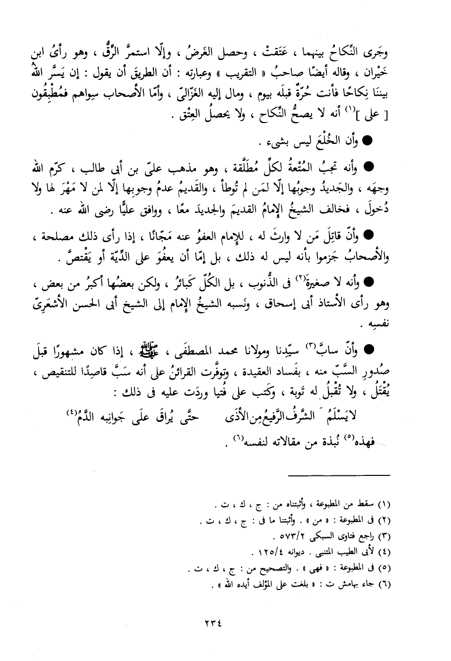 وَأَن سَاب سيدنَا ومولانا مُحَمَّد الْمُصْطَفى صلى الله عَلَيْهِ وَسلم إِذا كَانَ مَشْهُورا قبل صُدُور السب مِنْهُ بِفساد العقيدة وتوفرت الْقَرَائِن على أَنه سبّ قَاصِدا للتنقيص يقتل وَلَا تقبل لَهُ تَوْبَة وَكتب على فتيا وَردت عَلَيْهِ فِي ذَلِك