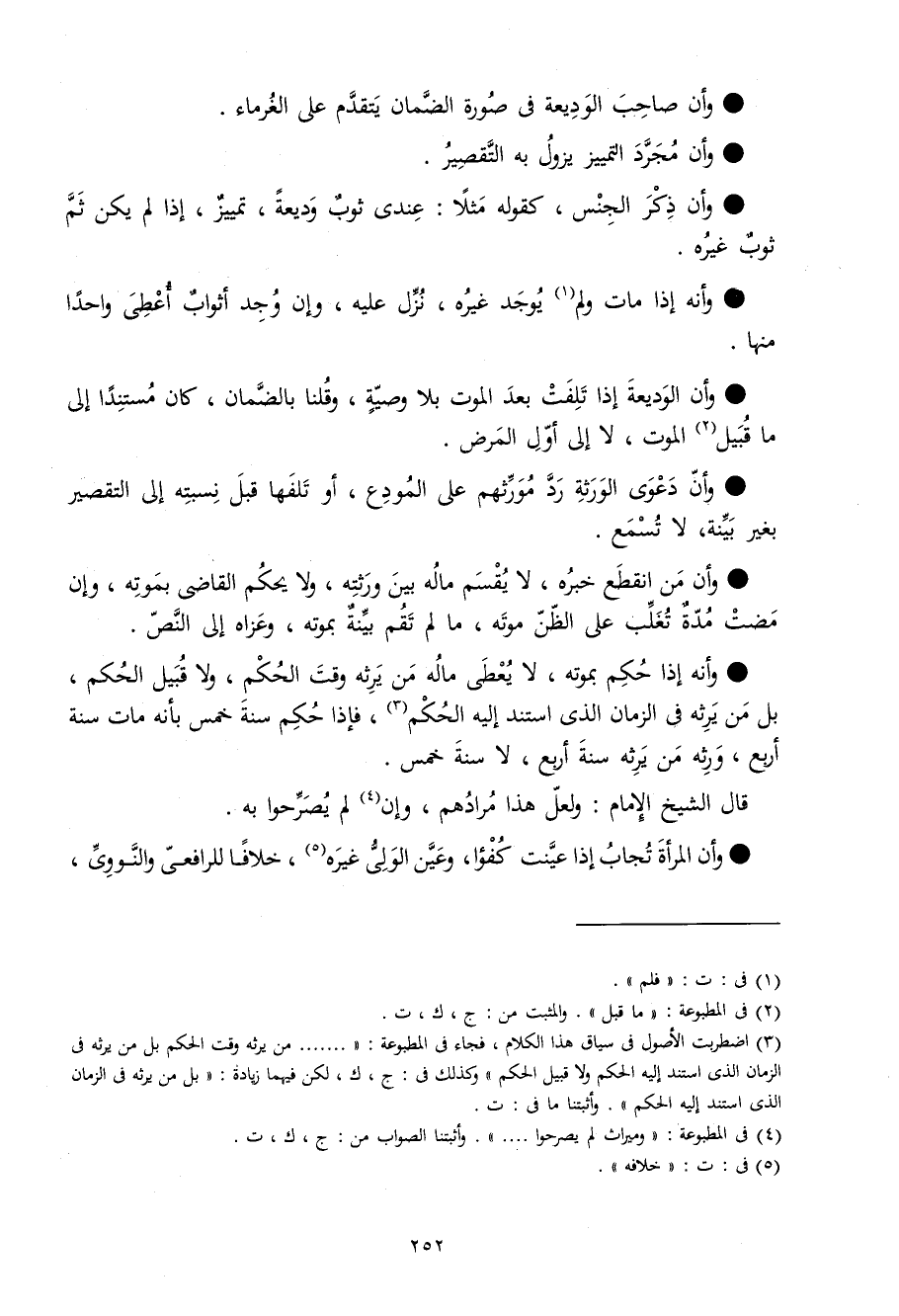 وَأَن دَعْوَى الْوَرَثَة رد مُورثهم على الْمُودع أَو تلفهَا قبل نسبته إِلَى التَّقْصِير بِغَيْر بَيِّنَة لَا تسمع