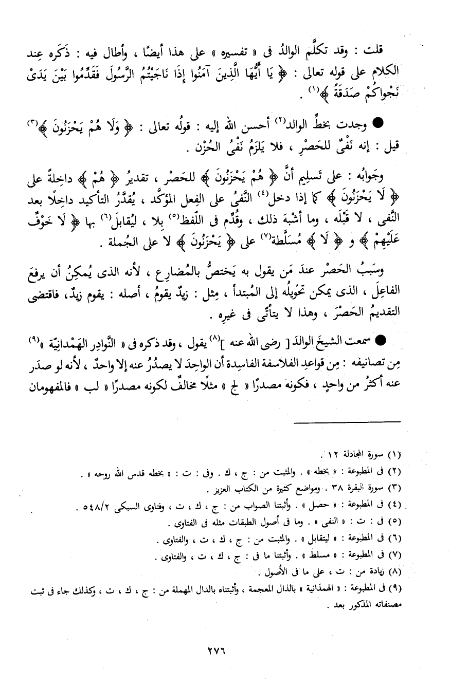 قلت وَقد تكلم الْوَالِد فِي تَفْسِيره على هَذَا أَيْضا وَأطَال فِيهِ ذكره عِنْد الْكَلَام على قَوْله تَعَالَى {يَا أَيهَا الَّذين آمنُوا إِذا نَاجَيْتُم الرَّسُول فقدموا بَين يَدي نَجوَاكُمْ صَدَقَة}