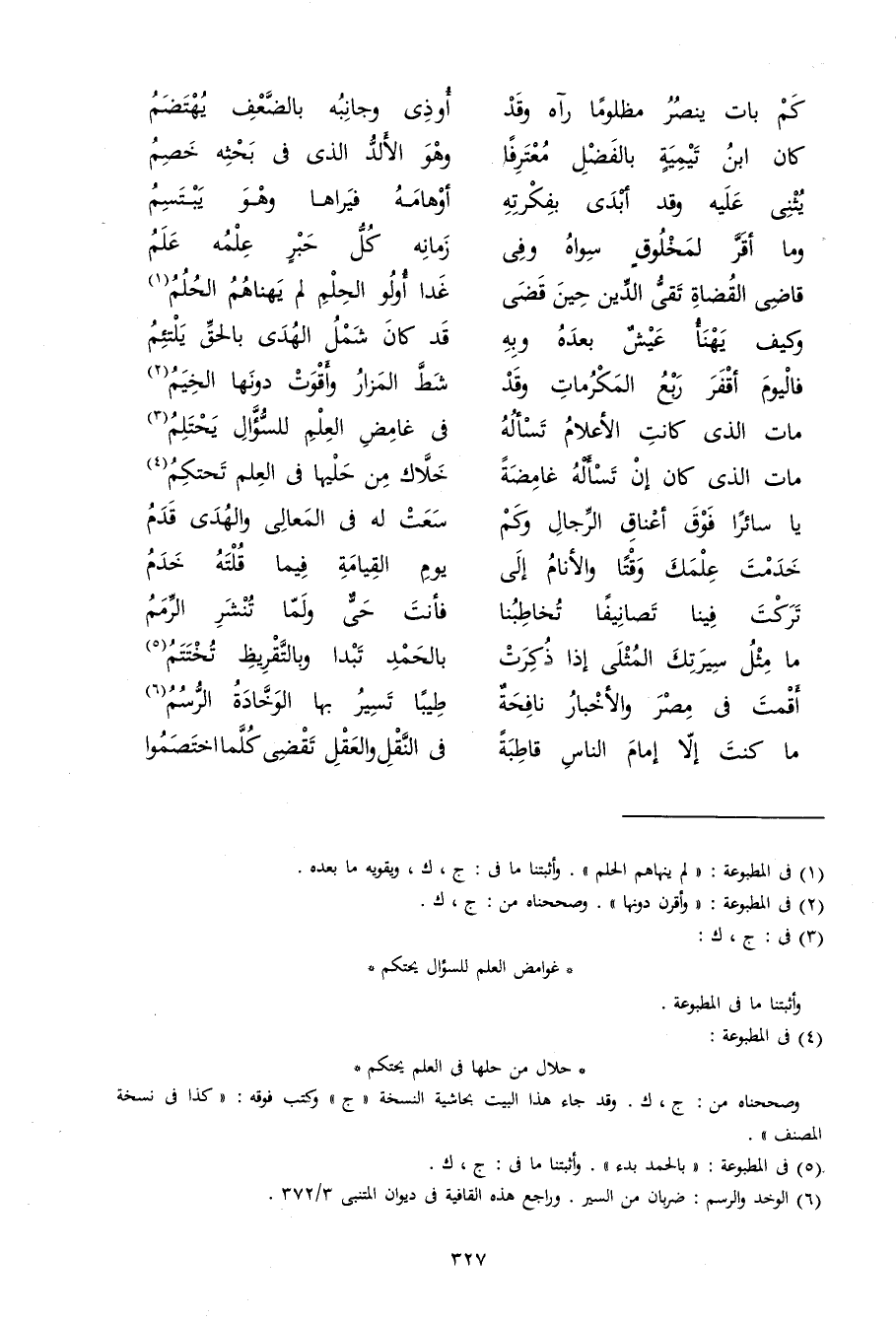 (كَانَ ابْن تَيْمِية بِالْفَضْلِ معترفا ... وَهُوَ الألد الَّذِي فِي بَحثه خصم)