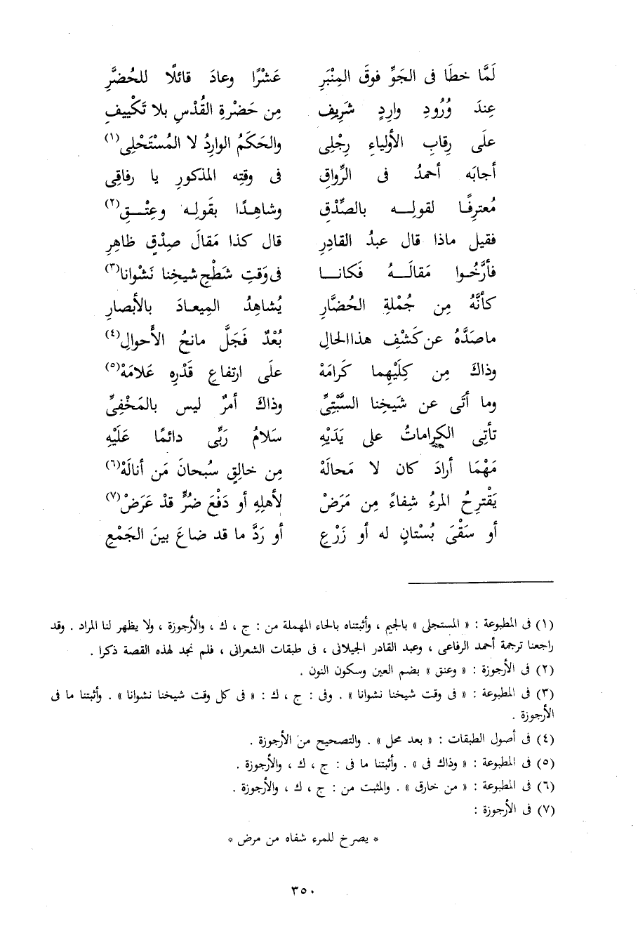 (على رِقَاب الْأَوْلِيَاء رجْلي ... وَالْحكم الْوَارِد لَا المستحلي)