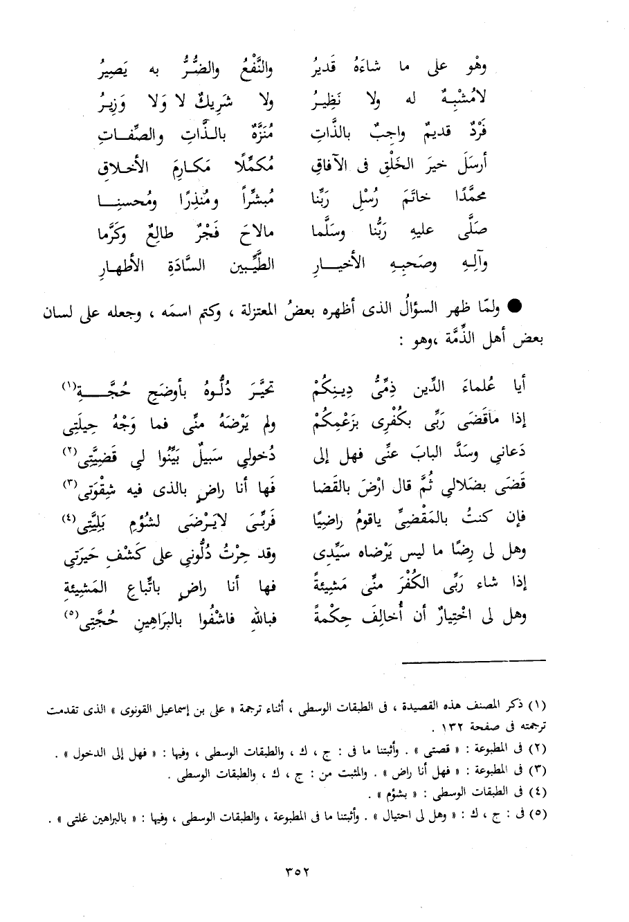 وَلما ظهر السُّؤَال الَّذِي أظهره بعض الْمُعْتَزلَة وكتم اسْمه وَجعله على لِسَان بعض أهل الذِّمَّة وَهُوَ