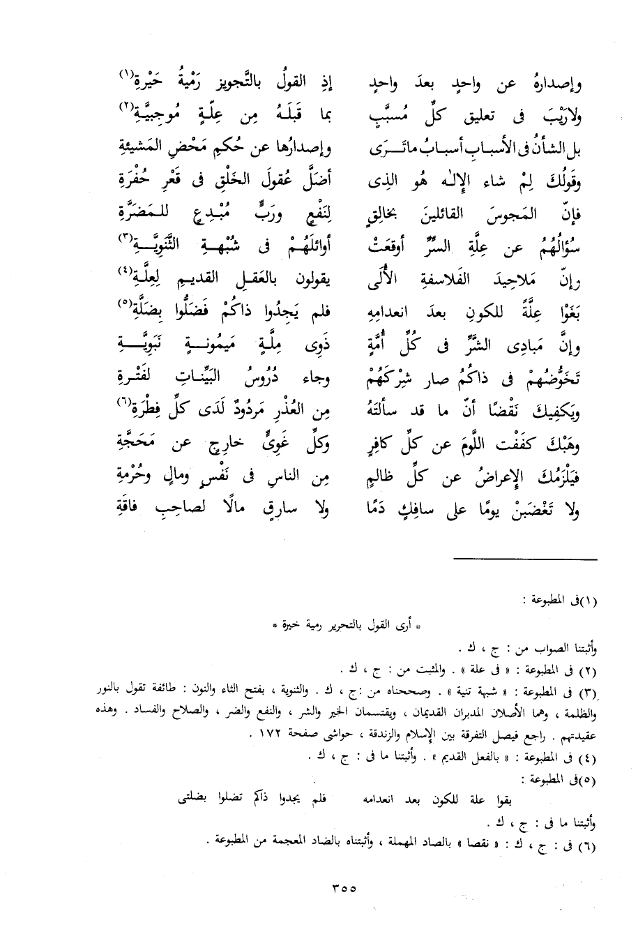 (بغوا عِلّة للكون بعد انعدامه ... فَلم يَجدوا ذاكم فضلوا بضلة)
