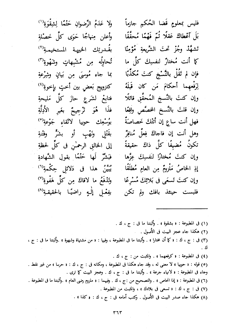 (وَإِن كنت بالنسخ الْمُحَقق قَائِلا ... فتابع لشرع حَاز كل مليحة)