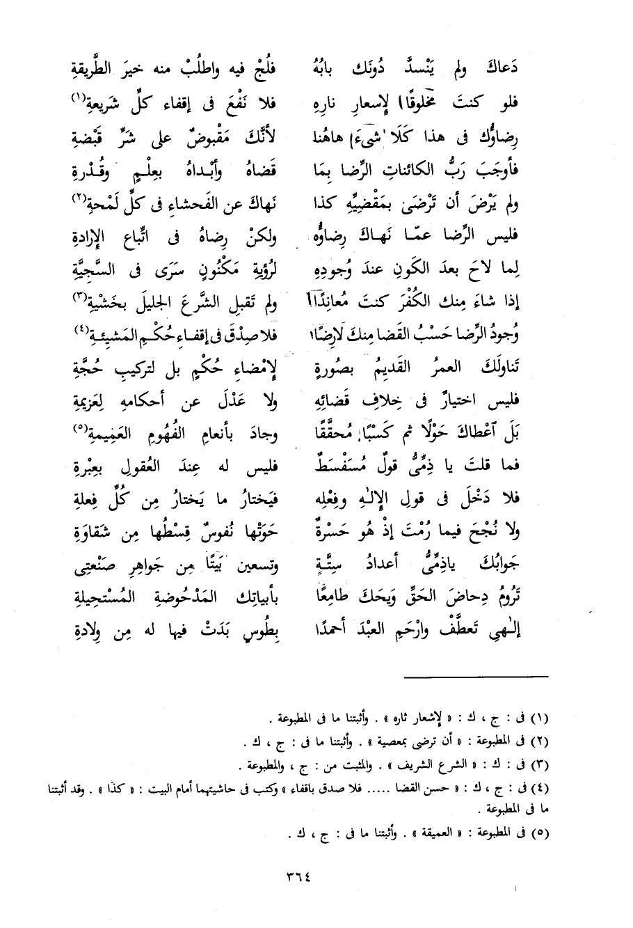 (فَأوجب رب الكائنات الرِّضَا بِمَا ... قَضَاهُ وأبداه بِعلم وقدرة)