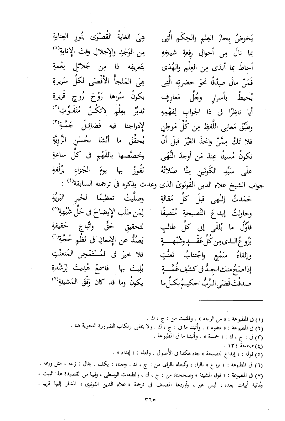 جَوَاب الشَّيْخ عَلَاء الدّين القونوي الَّذِي وعدت بِذكرِهِ فِي تَرْجَمته السَّابِقَة