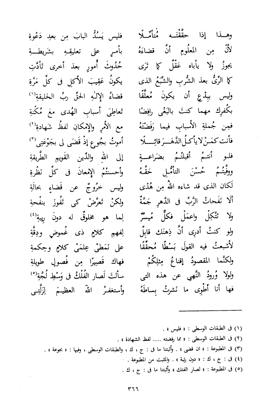 (ولكنما الْمَقْصُود إقناع مثلكُمْ ... فهناك قَصِيرا من فُصُول طَوِيلَة)