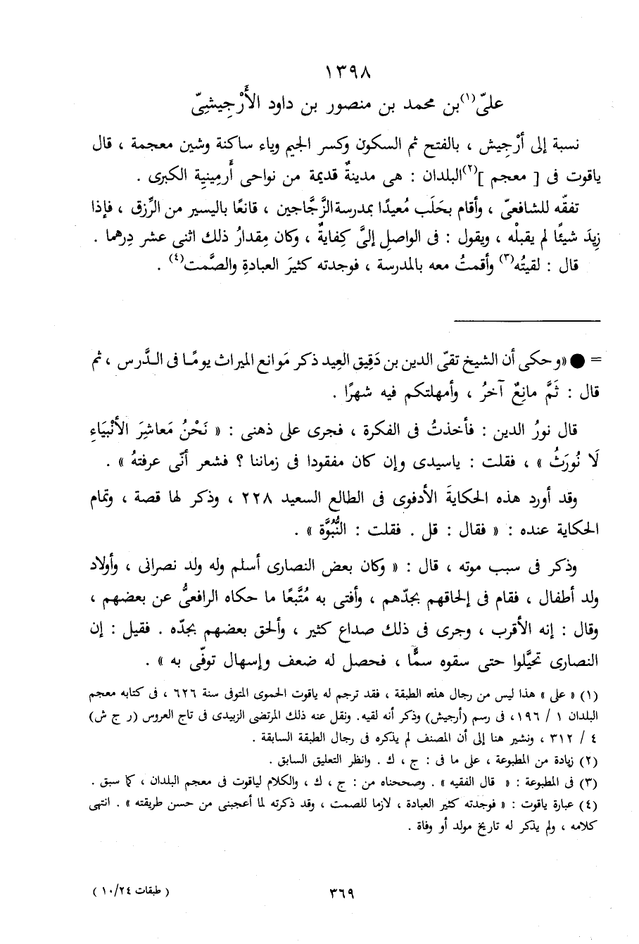 1398 - عَليّ بن مُحَمَّد بن مَنْصُور بن دَاوُد الأرجيشي
