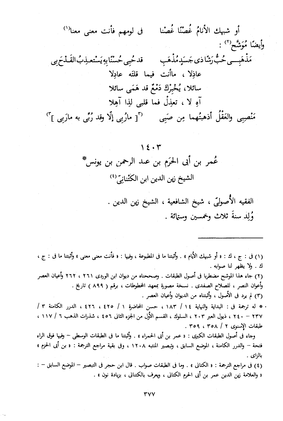 1403 - عمر بن أبي الْحرم بن عبد الرَّحْمَن بن يُونُس الشَّيْخ زين الدّين ابْن الكتاني