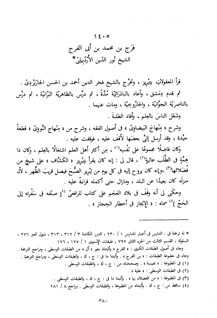 1405 - فرج بن مُحَمَّد بن أبي الْفرج الشَّيْخ نور الدّين الأردبيلي