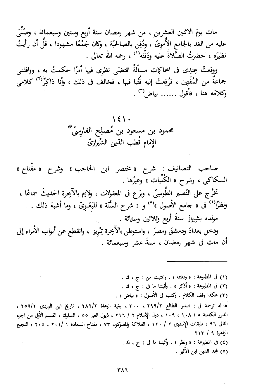 1410 - مَحْمُود بن مَسْعُود بن مصلح الْفَارِسِي الإِمَام قطب الدّين الشِّيرَازِيّ