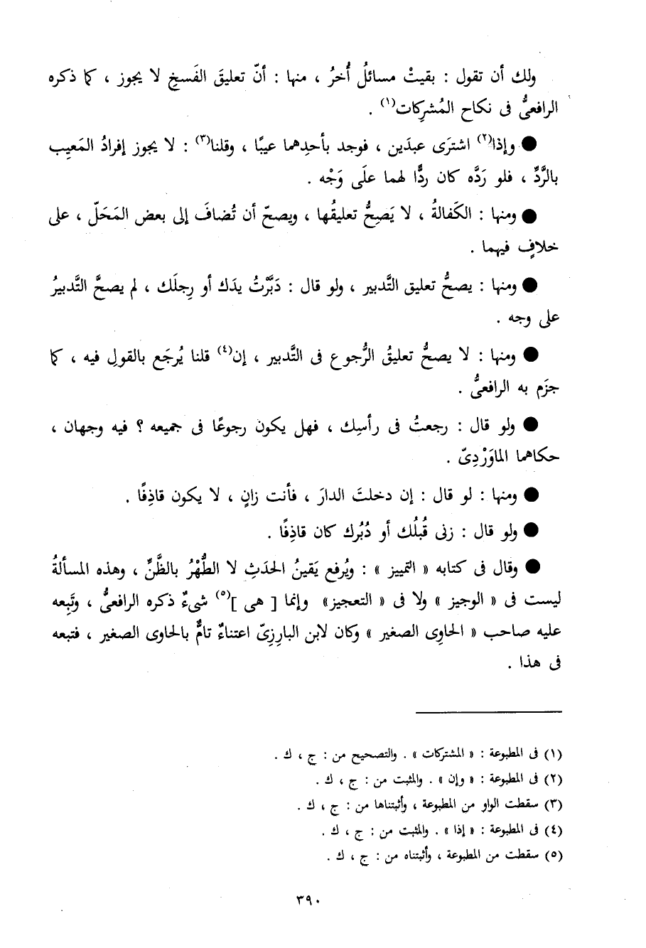 وَلَك أَن تَقول بقيت مسَائِل أخر مِنْهَا أَن تَعْلِيق الْفَسْخ لَا يجوز كَمَا ذكره الرَّافِعِيّ فِي نِكَاح المشركات