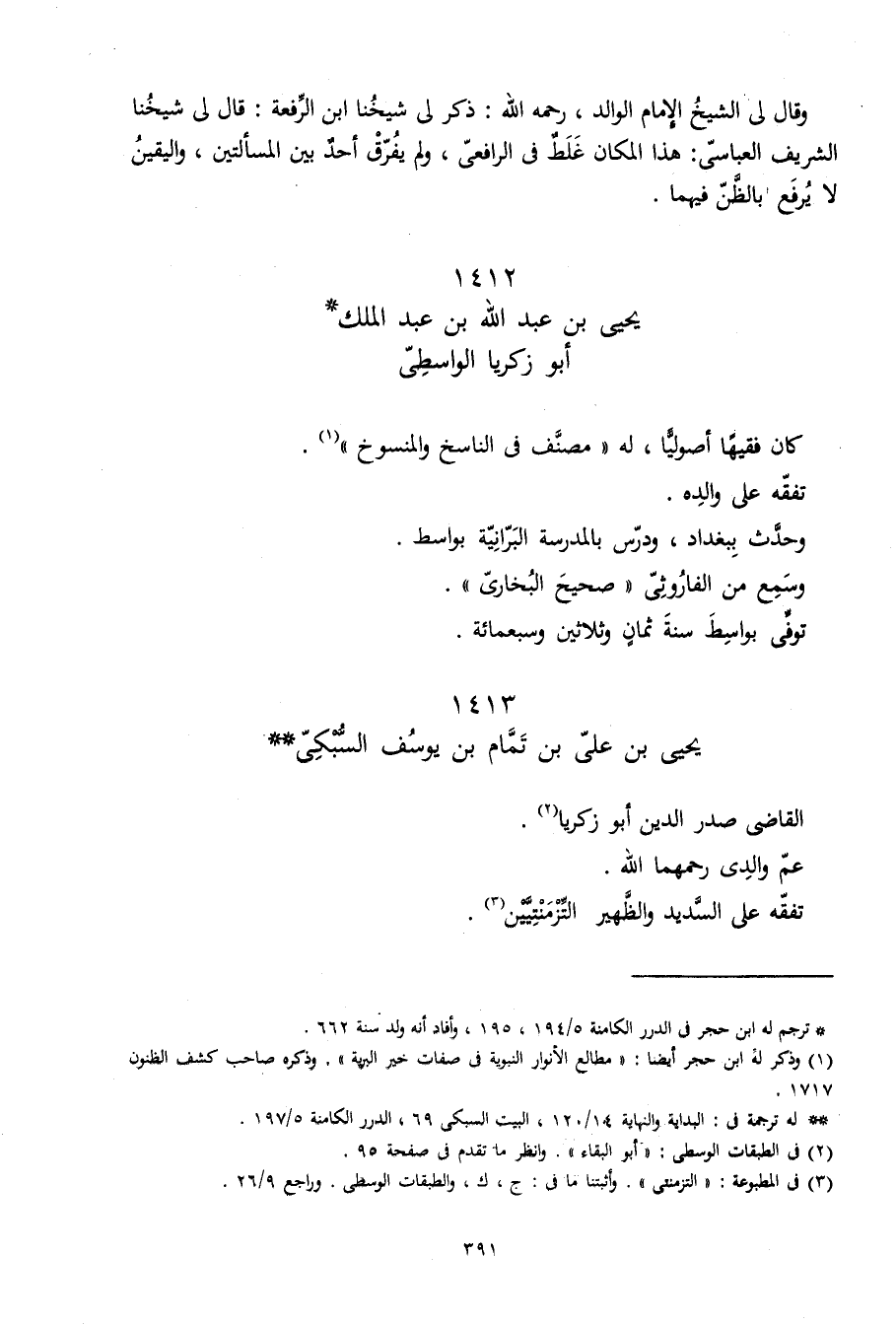 1413 - يحيى بن عَليّ بن تَمام بن يُوسُف السُّبْكِيّ