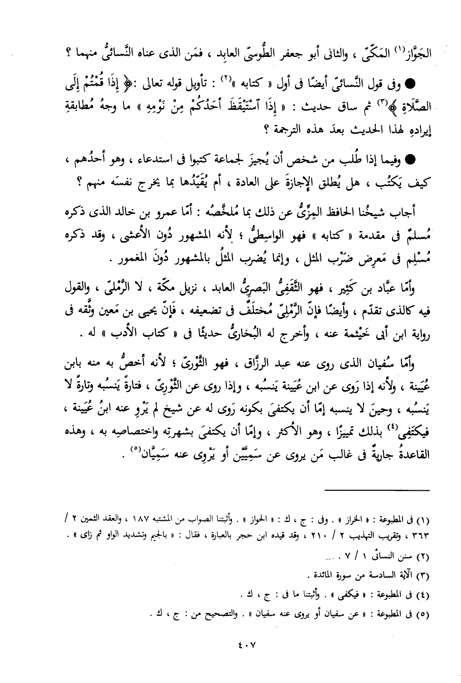 وَأما سُفْيَان الَّذِي روى عَنهُ عبد الرَّزَّاق فَهُوَ الثَّوْريّ لِأَنَّهُ أخص بِهِ مِنْهُ ابْن عُيَيْنَة وَلِأَنَّهُ إِذا روى عَن ابْن عُيَيْنَة ينْسبهُ وَإِذا روى عَن الثَّوْريّ فَتَارَة ينْسبهُ وَتارَة لَا ينْسبهُ وَحين لَا ينْسبهُ إِمَّا أَن يَكْتَفِي فكونه روى لَهُ عَن شيخ لم يرو عَنهُ ابْن عُيَيْنَة فيكتفي بذلك تمييزا وَهُوَ الْأَكْثَر وَإِمَّا أَن يكْتَفى بشهرته واختصاصه بِهِ وَهَذِه الْقَاعِدَة جَارِيَة فِي غَالب من يروي عَن سميين أَو يروي عَنهُ سميان
