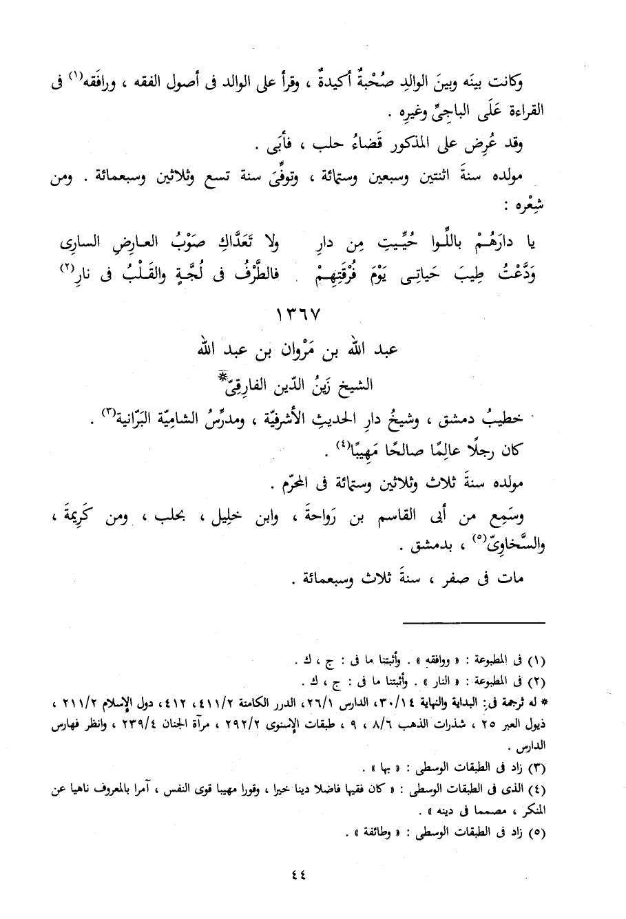 1367 - عبد الله بن مَرْوَان بن عبد الله الشَّيْخ زين الدّين الفارقي