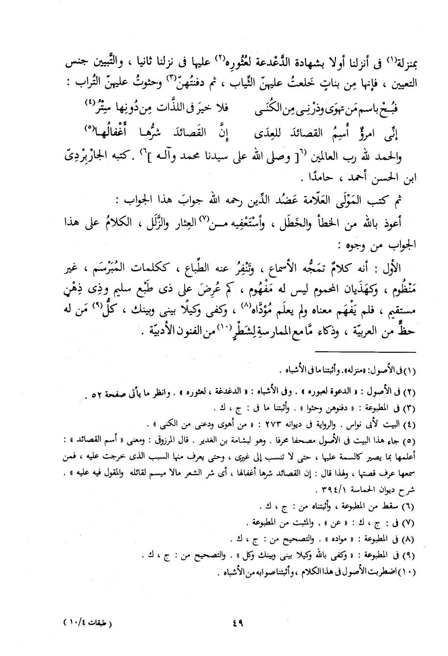 أعوذ بِاللَّه من الْخَطَأ والخطل وأستعفيه من العثار والزلل الْكَلَام على هَذَا الْجَواب من وُجُوه