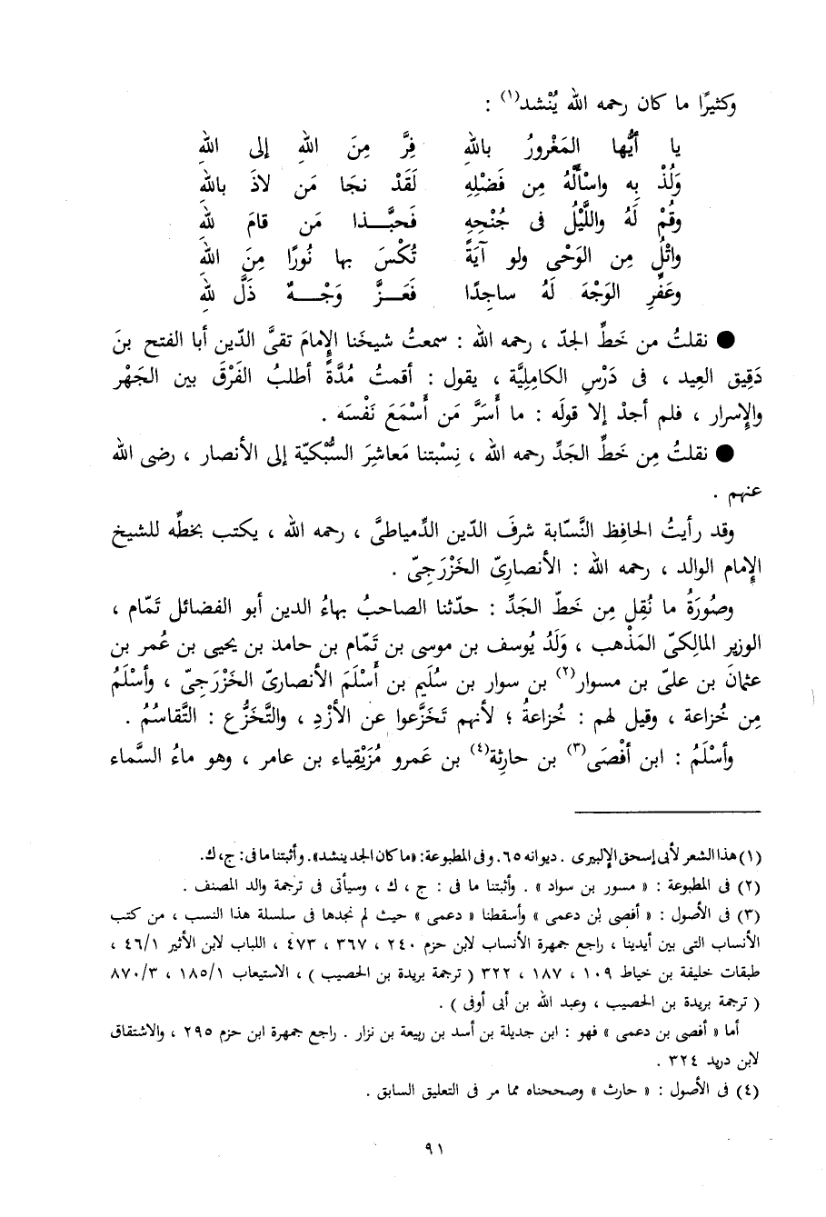 نقلت من خطّ الْجد رَحمَه الله نسبتنا معاشر السبكية إِلَى الْأَنْصَار رَضِي الله عَنْهُم