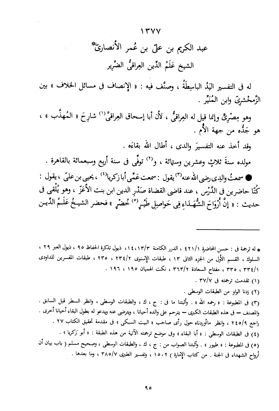 1377 - عبد الْكَرِيم بن عَليّ بن عمر الْأنْصَارِيّ الشَّيْخ علم الدّين الْعِرَاقِيّ الضَّرِير