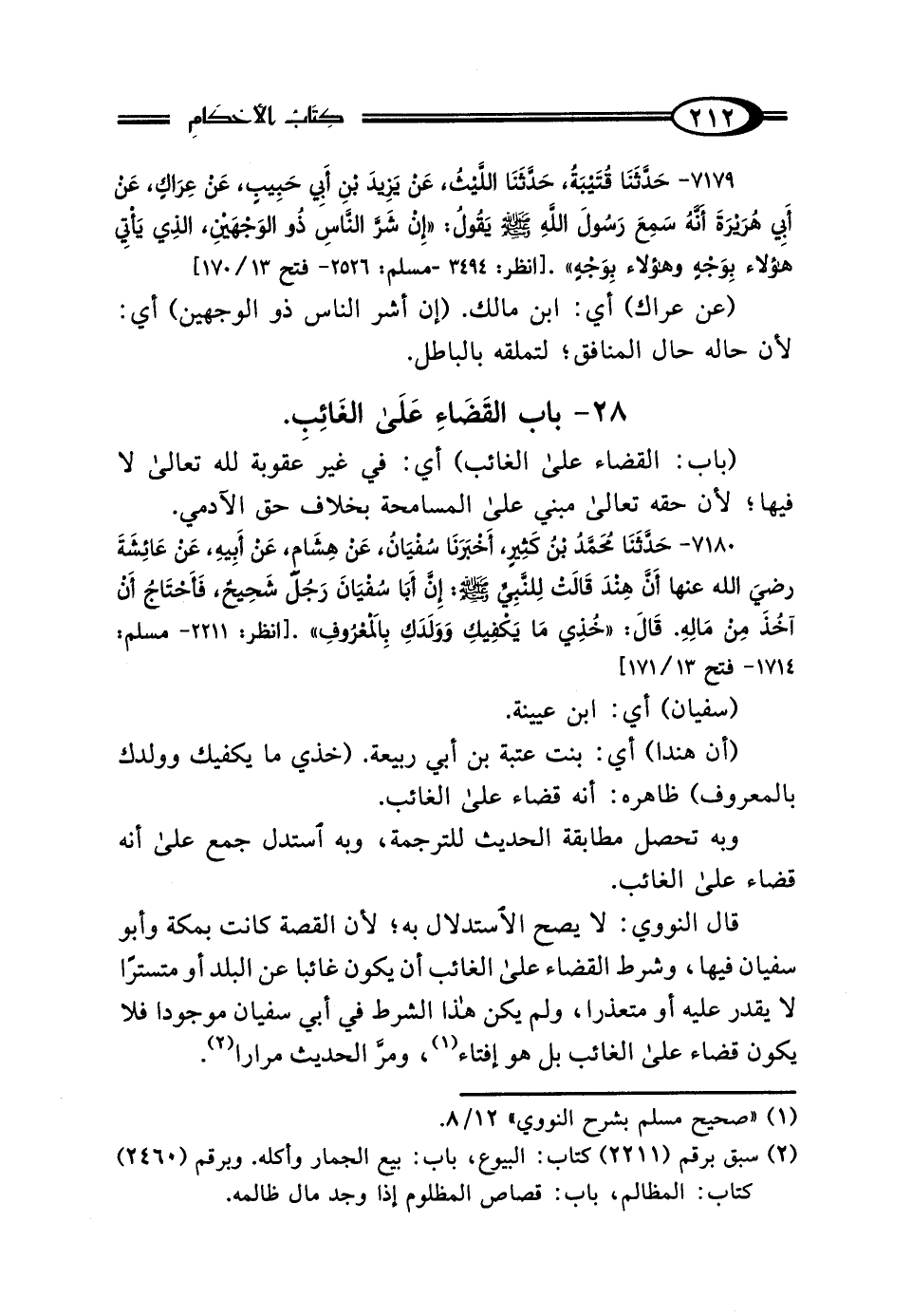 28 - بَابُ القَضَاءِ عَلَى الغَائِبِ