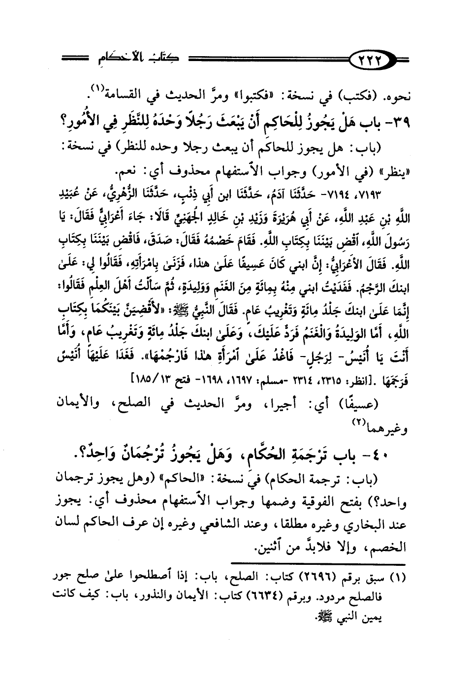 40 - بَابُ تَرْجَمَةِ الحُكَّامِ، وَهَلْ يَجُوزُ تَرْجُمَانٌ وَاحِدٌ؟.