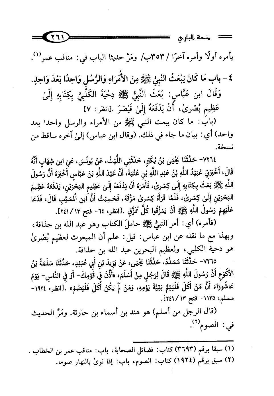 4 - بَابُ مَا كَانَ يَبْعَثُ النَّبِيُّ صَلَّى اللهُ عَلَيْهِ وَسَلَّمَ مِنَ الأُمَرَاءِ وَالرُّسُلِ وَاحِدًا بَعْدَ وَاحِدٍ